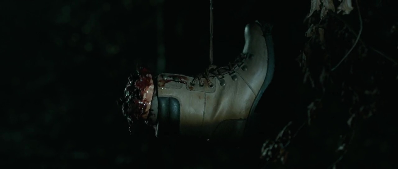 Ce n’est pas fin, mais ça a le mérite d’être rythmé. Alors quand le métrage se focalise sur Jamie, jeune puceau qui va craquer pour la magnifique Juliana (j’aurais craqué aussi je pense), au comportement étrange. Elle apparaît quand elle le souhaite, disparaît aussitôt, trouvant toujours une excuse, souvent par rapport avec son boulot. Jamie ne se doute de rien, obnubilé par la beauté de sa future conquête et surtout ayant envie de tremper son biscuit, jusqu’à ce qu’un homme étrange arrive à l’hôtel géré par sa famille. Se prétendant chasseur de loups-garous, nous avons là tout du… pire chasseur. Pas doué, inquiétant, se mordant la langue et s’embrouillant quand il parle, le monsieur se filmera même alors qu’il voulait filmer le loup passant furtivement un peu plus loin devant lui… C’est hautement débile, et j’avoue sans honte (mais un peu quand même) avoir eu un sourire à de nombreuses reprises.