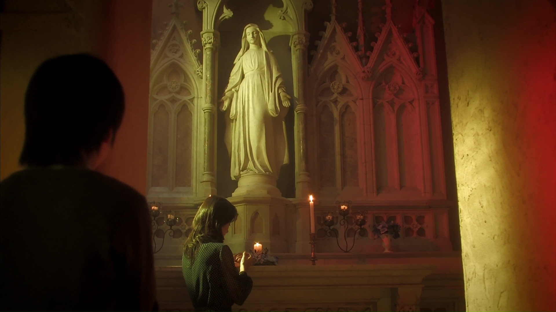 Bon alors, qu’est ce que ça donne, si on allonge tout ça de plus d’une heure ? Premier point, l’aspect visuel 4K. Love Exposure n’a jamais été aussi beau, et ce malgré son tournage en 1080p (donc, en 2K) et pour certaines scènes, en 16mm. Les couleurs sont éclatantes, l’image précise, et pour certaines scènes, on a clairement l’impression de redécouvrir le métrage. Même chose au niveau du son. Techniquement, sans doute la meilleure manière de découvrir, ou bien de redécouvrir le film. Le fond du film, avec ses très nombreux ajouts donc, reste passionnant de bout en bout, abordant des thèmes variés, des tons variés, des styles variés, mais le tout retombant quasi miraculeusement sur ses pattes en reliant le tout. La famille (dysfonctionnelle, comme toujours chez Sono Sion), la religion, en particulier le Christianisme, l’amour, l’acceptation de soit, la perversité, les sectes, la sexualité et tant d’autres choses. Tout ce qui était présent dans la version cinéma l’est toujours dans sa version longue. À cela, certains diront qu’il n’était donc sans doute pas nécessaire de sortir une version allongée, si elle n’ajoute rien au propos. Pourtant, en plus de se regarder de manière tout aussi fluide que la version cinéma, les ajouts donnent un plus au métrage. Non pas dans ses thèmes abordés, mais dans ces personnages. Le personnage de Koike notamment, travaillant pour l’église zéro, haut placée dans une secte, et qui jette son dévolu sur nos deux personnages principaux et bien différents, Yu et Yoko, a droit à un développement qui lui donne presque un nouveau visage. La version cinéma s’attardait déjà sur son passé au début du chapitre 2, mais ici, elle dévoile aussi par moment un côté plus doux, plus fragile, ce qui la rend plus humaine. Quand à ses deux amies qui la suivent partout, il faut avouer que l’on ne savait strictement rien d’elles. On les découvre cette fois-ci dans des flashbacks, recrutées par Koike, et donc, nous avons un court aperçu de leur vie d’avant. Le bon point, c’est que ces ajouts, ces nouvelles scènes, voir parfois ces bouts de scènes s’insèrent parfaitement dans le récit, mais aussi dans le montage.