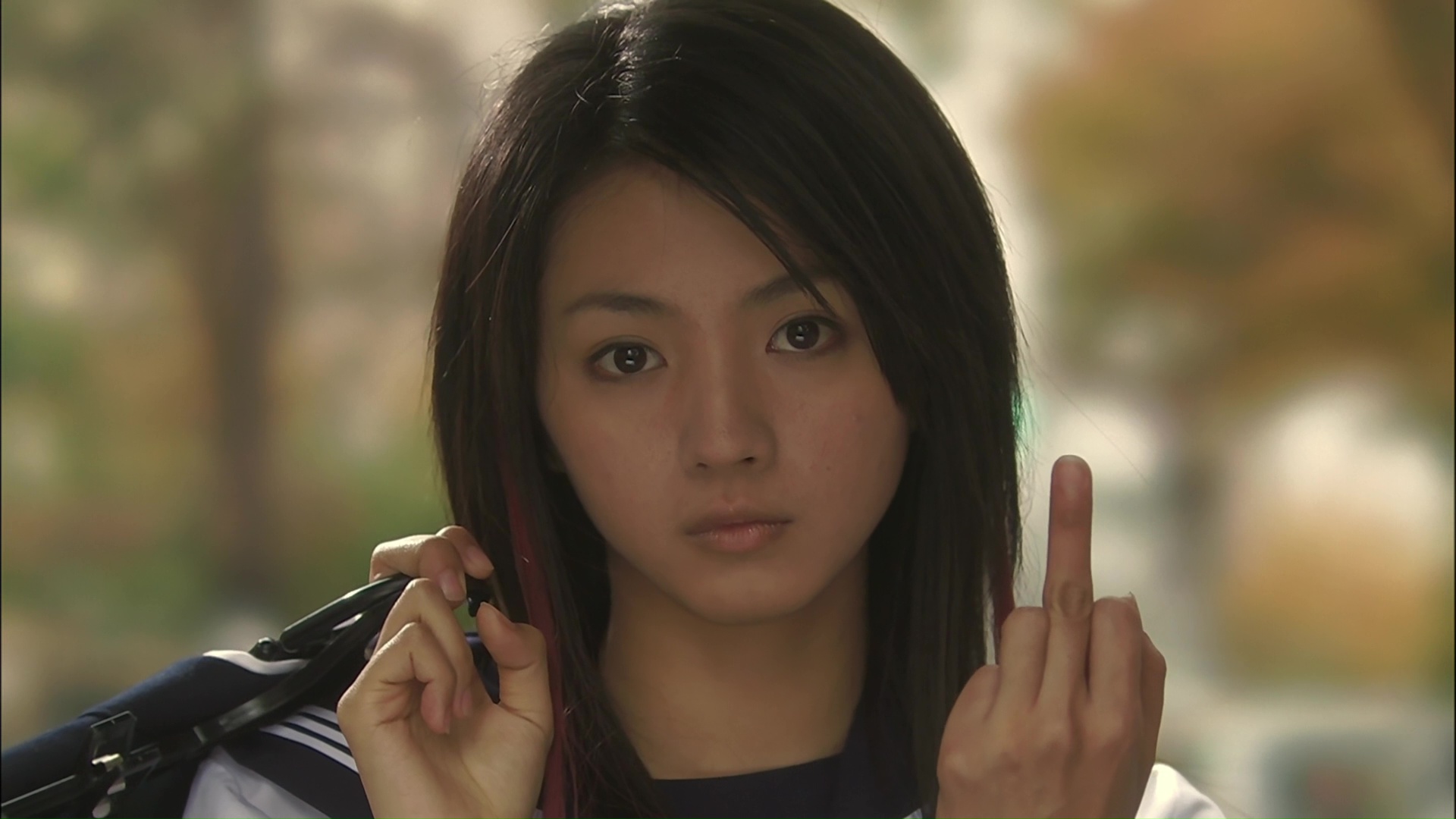 C’est complexe, c’est passionnant, le rythme est parfait, même lorsqu’il se calme sur la seconde partie et n’hésite pas alors à se poser un peu plus (avec même des plans larges caméra sur pieds), et on passe d’un sentiment à un autre. Parfois, on rigole de bon cœur, comme lorsque Yu se déguise en Sasori (la Femme Scorpion), ou bien son entrainement pour prendre des pantsu shot (plans de petites culottes dans la rue), à d’autres moments, l’ambiance se fait bien plus lourde (la première rencontre avec Koike, la scène dans le bus), par moment juste belle, et à d’autres, les larmes ne sont pas loin… Voir totalement là pour moi, comme sur la scène de la plage, ou le final. Et reconnaissant également le flair de Sono Sion pour avoir embauché deux idoles sur qui personne n’aurait parié à l’époque, moi le premier, en particulier Mtisushima Hikari, vue auparavant dans… Rebirth of Mothra 2 lorsqu’elle était enfant, et les deux métrages à l’allure de téléfilms Death Note en 2006. Ici, elle explose à l’écran, nous fait parfois pleurer, et continuera par la suite une carrière intéressante, souvent portée vers le cinéma indépendant (Sawako Decides, Villain, le remake de Hara-Kiri pour Miike, Rabbit Horror pour Shimizu, le drame sur l’homosexualité Kakera). Bref, si vous n’avez jamais vu Love Exposure, foncez, peu importe la version, bien que pour éviter les coupes toutes les 30 minutes avec un mini générique, je conseillerais plus la version cinéma. Mais encore aujourd’hui, 13 ans après, et face à la timidité générale au cinéma, autant au Japon que dans le monde, Love Exposure reste une œuvre forte et rare, celle qui déborde d’idées dans tous les coins, parfois au sein d’une même scène voir d’un même plan, et qui montre bien que lorsqu’un auteur s’exprime avec tout un panel d’émotions variées et une liberté totale dans le ton, cela donne un film d’une intensité assez rare, et qui nous happe, quitte à regarder 4 ou 5h d’affilé, peu importe l’heure qu’il est.