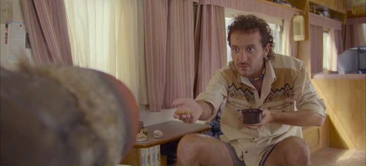 Du moins dans les prémices et les grandes lignes, car Mandibules semble être un Dupieux quelque peu adouci. Pas mauvais, mais où passé certains éléments d’intrigues, ressemble presque à un film normal, laissant l’absurde de côté pour aller dans un humour plus facile d’accès, un peu plus débile (mais drôle hein). Ce qui me conforte finalement presque dans l’idée que, si je suis un fan de Dupieux, ses films touchent quasiment au génie un film sur deux, avant de se faire plus sage un autre film sur deux, un peu comme Wrong Cops et Au Poste, qui malgré des éléments absurdes, étaient des films se déroulant dans un univers beaucoup plus normal, mais dont les éléments absurdes n’ont pas attraits à leurs univers, mais à leurs personnages. C’est clairement le cas dans Mandibules, où passé la présence de la mouche, renommée Dominique, on est beaucoup plus souvent face à un métrage mettant en avant les aventures de nos deux potes, et leur rencontre avec un groupe de personnages en vacances dans les environs qui vont les accueillir après quelques quiproquos. Des personnages presque normaux, à l’exception du personnage d’Adèle Exarchopoulos, excellente d’ailleurs, et qui passe son temps à gueuler. Si bien que pendant une bonne partie de son récit, Mandibules semble s’éloigner de ses prémices délicieusement absurdes pour se focaliser sur autre chose, sur les humains, sur la bêtise de ces deux rigolos qui se check non plus en disant Chivers mais Taureau. C’est presque dommage oui qu’autour d’eux, l’univers semble beaucoup plus classique, beaucoup plus accessible. Et comme le disait d’ailleurs Grégoire Ludig dans une interview, moins noir aussi.