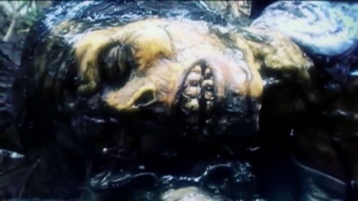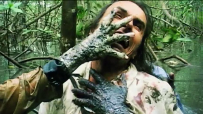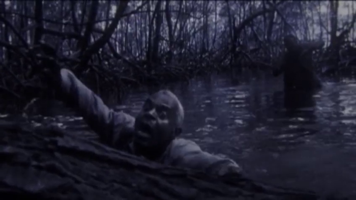 Sans le sou, Mangue Negro l’est également, il s’agit de ce genre de premier film dans la veine de Evil Dead et Braindead fait par un passionné dans son coin pour un budget café quotidien sur un blockbuster (on parle de l’équivalent de 10,000€). Ce genre de film où le sens de la démerde, la patience et la passion peuvent faire la différence et donner une petite pépite. On ira pas jusque là pour Mangue Negro qui si il bénéficie de qualités, s’enlise dans quelques défauts qui ne lui permette pas de se hisser au niveau des meilleurs représentants de métrages où le système D est roi. En tout cas bien plus qu’un scénario qui se limite à quelques âmes habitant non loin d’une mangrove de laquelle surgit un beau jour des zombies. Il n’est pourtant pas dénué d’intérêt. L’idée de la mangrove est intéressante dans le sens où d’une part, cela permet de donner une identité locale au film, mais aussi de dresser un petit discours écologique. A travers cette invasion de zombies, Rodrigo Aragão nous parle de ces écosystèmes littoraux en danger de disparition, menacés par la surexploitation humaine, la pollution et les changements climatique, allant jusqu’à mettre en péril les communautés locales qui vivent de la pêche. Loin d’être représenté comme un coin de paradis, la mangrove de Mangue Negro est sale et pourrie comme les zombies qui en sortent.