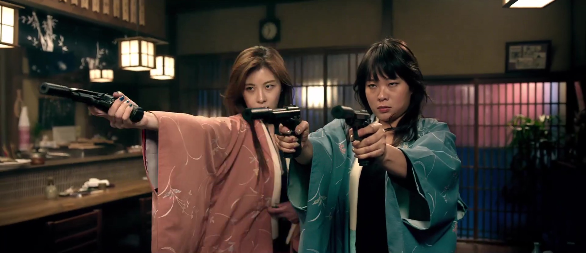 En fait, même le fan de John Woo un tant soit peu pointilleux sur la qualité pourra grincer des dents. Car au-delà des éléments qui font le cœur de son cinéma Hard Boiled, et du rythme du film, Manhunt accumule les faux pas, et parfois, les moments embarrassants. Le bon truc par contre, c’est qu’il le fait dés sa scène d’ouverture. Au moins, on sait dans quoi on se lance. Quand le film débute, on rencontre notre héros, et deux tueuses, Rain (Ji-Won Ha) et Dawn (Angeles Woo). Et on trouve déjà le premier défaut du film. Des erreurs de casting, il y en a. Ji-Won Ha a beau être mignonne comme tout, les deux sont peu crédibles en tueuses, et Woo aura beau nous les mettre flingues en main à trucider du Yakuza au ralenti, ben, non, c’est plutôt risible. Beaucoup de choses à dire d’ailleurs sur le casting, puisqu’à part Hanyu Zhang, généralement bon en toute circonstance, en anglais comme en chinois, et bien, la plupart des acteurs doivent parler deux langues. Au choix, le chinois et l’anglais, ou le japonais et l’anglais. Et la plupart du temps, quand ça passe en anglais, ça perd de la crédibilité. Mais bon, passons sur les acteurs, et venons en à l’histoire. On retrouve des thèmes chers à Woo, avec l’amitié entre un flic et sa proie, tout ça tout ça, le tout sur une traque, un complot pharmaceutique, un super médicament qui donne des supers pouvoirs (ouais ouais véridique), et… non, impossible de prendre cette histoire au sérieux. Si la traque qui a lieu sur la première heure passe, la dernière partie mettant en avant le complot, le médicament, des méchants très méchants et tout ça, ça ne passe pas. Ça a un côté très comics, voir très jeu vidéo dans son approche visuelle de l’histoire, et c’est étrange, rigolo parfois. Mais bon, il y a l’action vous me direz. Oui, il y en a, beaucoup. C’est d’ailleurs le plus souvent là où le film fait plaisir.