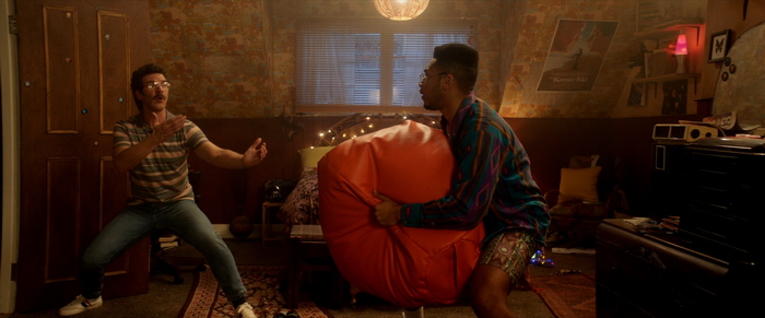 Scott Atkins lui-même va jouer à fond la carte de l’autodérision, jouant sans cesse sur le ridicule de son personnage qui se la pète modèle géant et qui a parfois du mal à connecter ses deux neurones, balançant des répliques bien crétines du genre « Come get some, intergalactical space scum ! ». Les dialogues plutôt bien écrits sont d’ailleurs un des moteurs de la comédie et les acteurs semblent prendre un énorme plaisir à les balancer en cabotinant le plus possible. La mise en scène de Martin Owen (Killers Anonymous, Twist) est plutôt maline afin de pallier au manque de budget de cette petite production. Il va alterner les scènes à l’intérieur du jeu vidéo, et les scènes dans la chambre où est branchée la console en nous montrant le jeu à l’écran. Certains moments qui auraient été trop complexes (Le combat contre les limaces géantes, celle contre le boss « cochon ») par rapport au budget se font donc avec les graphismes d’un jeu vidéo 16 bits directement sur un écran de télévision. Astucieux, mais néanmoins un peu frustrant car on aurait aimé que le délire qu’on nous présente continuent sur des scènes d’action autres que des kicks et coup de poings de Adkins sur des sbires de pixels. Néanmoins, on sent que de vrais gamers sont aux commandes car l’univers qui nous est dépeint est respectueux envers les jeux vidéo dont le film s’inspire. Tout est loin d’être parfait, à commencer par un méchant en demi-teinte, interprété par un John Hannah (La Momie, 4 Mariages et 1 Enterrement) semblant un peu désespéré de son accoutrement, le manque de budget qui parfois se fait franchement ressentir, où encore ce look 80’s qui commence à sortir par les trous de nez de beaucoup de monde devant l’avalanche de films reprenant l’ambiance des années 80. Mais si comme moi vous vous laissez embarquer par le délire, vous passerez un bon moment devant un film qui possède de forts relents de feel good movie.
