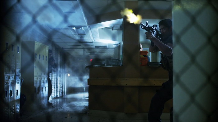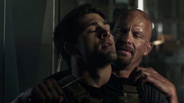 Après une première demi-heure sincèrement pénible, l’action se fait plus fréquente, avec des morts parfois particulièrement méchantes. Cette action est essentiellement composée de fusillades et ce n’est pas plus mal car les quelques scènes de combat impliquant Steven Seagal sont montées à la hache pour essayer de cacher que ce dernier a désormais 60 ans et qu’il n’est plus aussi mobile et agile qu’à ses débuts. Malgré tout, il nous gratifie de quelques mouvements sympathiques et le combat final, à défaut d’être réellement intéressant, est amusant à voir car frôlant avec le ridicule. Steve Austin amène lui aussi une scène qui fait sourire, un combat dans la cuisine de la prison à base de casserole et d’eau bouillante. A noter que la meilleure scène d’action revient à Bren Foster (Life After Fighting) qui, malgré un montage là aussi chaotique, a suffisamment d’énergie pour enthousiasmer un minimum. Si le montage du film dans son ensemble avait été un peu plus soigné, on aurait clairement pu avoir quelque chose de vraiment divertissant. En l’état, c’est quand même assez moyen d’autant plus que le Maximum Conviction se fait souvent trop bavard et comme les scènes d’action sont au final assez courtes, eh bien il faut remplir avec de la parlotte. Et au final, on se retrouve avec un produit souvent lambda, un peu trop emballé à la va-vite, et surtout bien trop ennuyeux pour qu’on s’y intéresse un minimum, avec cette impression de gâchis car la promesse Seagal / Austin n’est clairement pas mise en images comme elle le devrait.