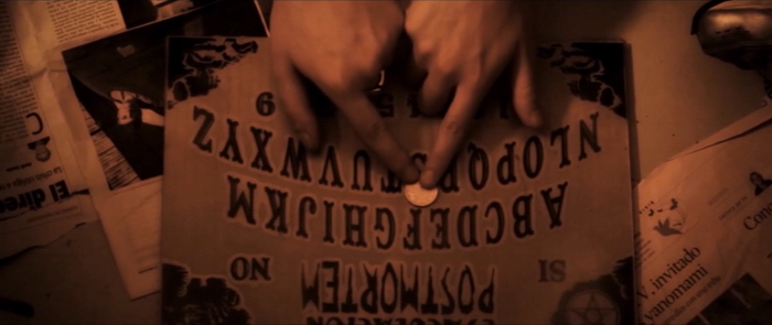 Megamuerte dépeint l’un des grands mythes de l’horreur : l’influence satanique de la musique, un peu à l’instar du récent Studio 666 dont je vous ai parlé récemment. Des jeunes gens vont devoir lutter contre leur groupe de musique préféré qui a été possédé par un esprit sorti de partitions écrites en lettres de sang. Dans Megamuerte, tout est kitch, voire raté. Les acteurs jouent tous comme des pipes, semblant parfois réciter leurs répliques de façon bête et méchante. Le montage est lui aussi souvent aux fraises, avec même des écrans noirs un peu trop longs entre deux scènes. Le scénario est bien trop mince pour un film de 1h30 et là où le court métrage allait directement à l’essentiel, la version longue se perd parfois dans des scènes qui ne font pas avancer le schmilblick. Les effets spéciaux sont lowcost au possible avec des marionnettes de monstres façon Ghoulies du pauvre, elles-mêmes déjà bien kitchos, et des SFX façon Ghost Kung Fu Comedy HK des années 80. Et pourtant, on ne peut s’empêcher de s’amuser devant ce spectacle un peu naïf, bien con-con, car Megamuerte suscite très rapidement notre sympathie (si on est réceptif à ce genre de bobines, je le répète). Tous ces défauts finissent presque par devenir des qualités et donnent au final un charme très particulier au film, comme lorsqu’on découvre pour la première fois Toxic Avenger ou le monstre en mousse d’un Charles Band quelconque du début des années 80. On regarde ça avec un sourire au coin de la bouche, en s’amusant à détecter le moindre faux raccord, le moindre dialogue improbable, le moindre effet spécial en carton-pâte (et ils sont nombreux). Et au final, bah c’était bien fun.