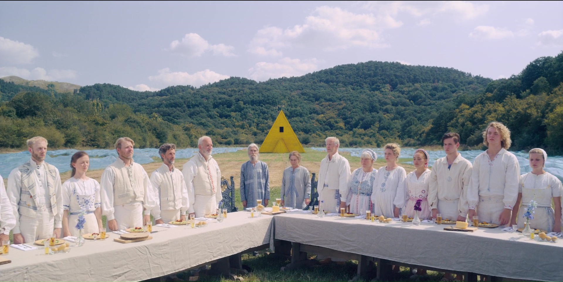 Malgré tout, soyons honnête également, en radicalisant son cinéma, Ari Aster, bien que développant à 200% son propos par la grammaire de l’image, délaisse quelque peu la narration plus classique, ce qui pourra laisser les spectateurs les moins attentifs sur le carreau, eux qui n’y verront alors là qu’un trip un peu longuet de 2h30. On pourra dire, puisque The Wicker Man (l’original hein) est une inspiration certaine, que le scénario du dit film était plus solide dans sa narration même. Mais Midsommar en terme de technique et d’intentions le bat à pleine couture. Le trip commence doucement, mais impressionne toujours. Au départ de manière simple, comme lors des premières hallucinations de Dani, qui ne semble alors ne faire plus qu’un avec la nature, son environnement. La jeune femme panique, ce qui est normal vu son passé et les récents événements. Puis lors de la plongée des personnages dans les rites un peu plus agressifs du culte, le malaise ne gagne plus que les personnages, mais également le spectateur. À condition bien entendu d’être réceptif à la vision proposée par le réalisateur, qui ne ménage personne, et qui ne cherche pas à obtenir une réaction de la part du spectateur par les tics habituels. Comme dit en début de chronique, pas de jumpscares ici, pas de tueur, ni de monstres. Même pas de grosse scène à suspense, de jeu d’ombre ni rien. Non, Midsommar est un film rayonnant, lumineux, mais qui prouve aussi que le cinéma dit de genre n’a pas besoin forcément d’artifices particuliers pour nous faire ressentir quelque chose, comme le démontre la scène finale, poignante, déchirante même par moment. Et ça, c’est du vrai cinéma sensoriel, celui qui prend aux tripes et nous fait passer par une multitude d’émotions. Il faut bien entendu accepter de se laisser porter.