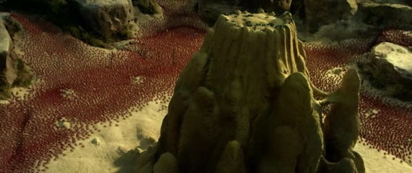 Aussi bien adapté pour les petits que pour les plus grands, ce long métrage Minuscule apporte un souffle épique que la série n’a pas de par la faible durée de ses épisodes. Le film nous présente un affrontement entre des fourmis noires et des fourmis rouges qui se battent pour une boite de morceaux de sucres récupérée sur un lieu de pique-nique, et au milieu de tout ça, une gentille petite coccinelle qui va tant bien que mal essayer d’aider la balance à pencher d’un côté. C’est grâce à tous ces petits insectes semblant plus vrais que nature, malgré leur côté quelque fois un peu cartoon, que Minuscule va fonctionner à fond. Ce ne sont que des petites bestioles mais elles ont un côté profondément humain et il n’y a pas à chercher bien loin pour s’apercevoir que le film essaie de faire passer de nombreux messages qui parleront sans aucun doute aux enfants. La différence, le racisme, la loi du plus fort,… mais aussi la tolérance, l’entraide, l’amitié, l’empathie, le respect de l’autre… Des thèmes certes basiques pour beaucoup mais qui sont pourtant essentiels à toute société. Les insectes ont beau ne prononcer aucun mot, leurs expressions plus vraies que nature et leurs comportements font que les petits sons qu’ils produisent sont largement suffisants pour arriver à les comprendre.