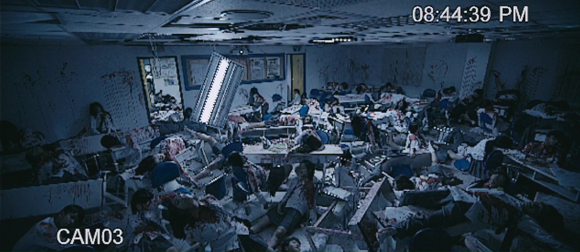 Notre bande de héros fait des actes impossibles à excuser. Les monstres cannibales, nous ignorons tout sur eux, et nous ne les voyant, libres, que tuer, ou capturés, que subir. Quand au système éducatif, il n’est pas mieux, la prof ne pensant qu’à ses intérêts, et n’hésitant pas à rabaisser chacun de ses élèves quand cela devient nécessaire pour elle. Quand au personnage principal, il aura beau tenter de dire qu’il est différent, de se justifier, comme pour se rassurer lui-même, mais c’est trop tard, sa plongée avec la bande aura révélé, à lui-même et aux autres, sa vraie nature. Il ne vaut pas mieux. Et l’horreur dans tout ça ? J’y arrive j’y arrive ! Comme je l’indiquais pour la scène d’ouverture, Giddens Ko semble comprendre que le gore à répétition ou filmé avec les pieds ne fonctionne pas (ou ne fonctionne plus). Il retarde donc l’inévitable, avec une première heure relativement calme, avant que les événements, passé la scène choc du gymnase (prouvant encore une fois que l’humain est pourri et préfère rire du malheur et de la douleur des autres), ne s’accélèrent, en montrant simplement la quête d’une des cannibales pour retrouver sa sœur captive. Et comme sa seule piste sera les élèves de ce lycée, et bien ils vont devoir tous y passer. Le réalisateur trouve même un équilibre, très fin, entre le choc des situations, des images, de son propos, et le grotesque du ton, son humour, et donc un ton parfois jubilatoire. Un équilibre fragile, à coups de massacre aux giclées de sang XXL où vient se mélanger de la pop douce et un ton noir et grotesque de sale gosse. En résulte quelques scènes sanglantes au possible, et marquantes, comme la scène du bus, ou celle de la salle de classe. On aurait sans doute aimé plus de rebondissements, ou un propos parfois plus nuancé, mais Mon Mon Mon Monsters fait du bien par où il passe.