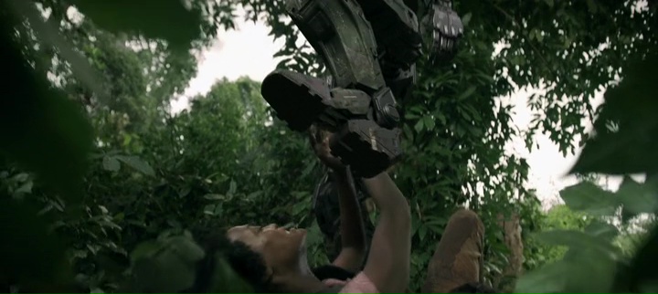 Il faut dire que la plupart ne sont pas développés, ou ne dépassent jamais le stade du cliché, ou de leur fonction en ce qui concerne les trois professionnels en robotiques qui donnent des ordres aux robots à distance et essayent de calmer la situation qui leur échappe. On a les méchants très méchants, les gentils très gentils, et entre les deux, beaucoup (trop) de personnages secondaires. Mais comme dit, là où le film se mord la queue, c’est dans sa durée. 2h10 pour une simple traque dans la jungle, c’est long. Un peu comme si Mark Toia, qui signe apparemment son premier long métrage (mais deux autres sont prévus), n’avait pas voulu couper la moindre scène de son film, un peu comme pour justifier son budget, ou prouver que chaque centime récolté pour le métrage a bel et bien été dépensé pour le métrage. Le monsieur devait après tout être fier de son travail, puisqu’en plus de réaliser, il produit, écrit et s’occupe de la photographie de son métrage, légèrement morne mais propre. On peut le comprendre, surtout pour un premier film, surtout qu’en tenant tous les postes importants, il n’avait personne pour le modérer. Mais le film veut en faire trop, sans pour autant se renouveler. Il ne s’agît après tout que d’une traque, et du coup, tout prend son temps (les robots ne commencent l’assaut qu’après une bonne demi-heure), et ça tourne rapidement en rond, les personnages ne faisant que fuir d’un autre à un autre, toujours traqués.