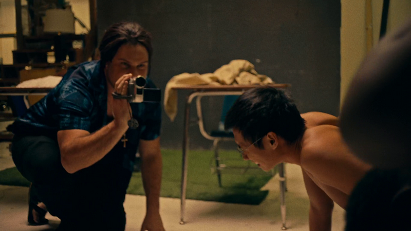 Non, ce qui intéresse le réalisateur, c’est les personnages (au casting impeccable, dont Nathan Stewart-jarrett, Kelly Sry, brian Huskey, et même David Arquette qui s’amuse dans son rôle de réalisateur porno professionnel), il réussit à faire une histoire d’amitié touchante sur deux paumés qui rêvent de gloire et d’ascension sociale, rapidement confrontés à la réalité des choses, ce dont Tom est pleinement conscient et s’épanouit dans son nouveau job de web designer qui se fait occasionnellement pisser dessus le temps du tournage d’une scène. Quant à Steve, qui croit dur comme fer que que son avenir sera fait de strass et de paillettes au point de violemment se mentir à lui même, encore plus lorsque ses proches tentent de le ramener à la raison (des scènes cruelles, voire triste et glauque à la fois, comme cette scène où Tom lâche ses quatre vérités à Steve en plein tournage d’un gang bang), ce qui l’emmène à n’en faire qu’à sa tête au point de fermer la seule porte qui aurait pu l’envoyer plus près des étoiles, c’est sa lente descente dans la folie qui est mise en avant, peut être un peu trop. Pas que le personnage soit inintéressant, c’est même tout le contraire, mais le récit est trop centré sur lui et en oublie par moment l’autre moitié du binôme, ce qui impacte grandement les dernières minutes du métrage qui pour le coup ne provoque aucune émotion, en plus d’être trop rapidement expédiées. Coté personnages secondaires, si il s’agit pour beaucoup d’autres employés de l’Ultima DVD inc., c’est son propriétaire et réalisateur qui n’hésite pas à donner de sa personne pendant un tournage qui donne une profondeur supplémentaire au film. Celui-ci reste un chef d’entreprise qui fait évoluer les bons éléments et vire les troubles fêtes, ce qui développe d’avantage le thème de l’ascension sociale, qui reste peu ou prou le même, qu’importe le domaine. Car au delà d’un portrait de l’industrie du porno qui meurt à petit feu à l’heure où tout est accessible gratuitement et sans limite en deux clics, où les acteurs vont toujours plus loin et les actrices encaissent de plus en plus et toujours plus pour se faire remarquer, Mope s’en prend également à la vision du fameux rêve Américain, qui est bel et bien enterré mais continue pourtant de faire miroiter à qui veut encore y croire qu’à force de travail et de persévérance, tout est possible. Stephen Clancy Hill était de ceux qui voulaient y croire, et le destin l’aura amené à avoir son quart d’heure de gloire, mais à quel prix ?