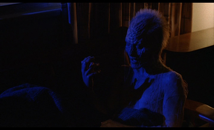 Oui, ici, pas de téléportation ratée, loin de là. Le métrage et le personnage vont même partir dans une direction différente, puisque Martin cherchera à guérir de sa « maladie » grâce à la téléportation, pour retirer ses mauvais gênes et avoir enfin une vie normale. Pourtant de nombreuses scènes viendront nous rappeler l’original, comme la téléportation ratée d’un animal (mais ici à des fins différentes, puisqu’ayant une vraie importance dans l’histoire et pour le personnage), la romance avec un personnage dont le patron n’est pas très sympa, mais passé ces quelques éléments, le film suit sa propre voie. Est-ce que ça fonctionne ? Pas toujours. Mais le résultat est clairement loin d’être honteux. En vérité, l’on sent le réalisateur Chris Wallas pas toujours forcément à l’aise dans ce qu’il filme. Dès lors qu’il doit filmer par contre des abominations génétiques ou autres effets sanglants, il donne tout ce qu’il a, et se fait beaucoup plus intéressant, et donc, à l’aise. Le scénario lui, sans être transcendant, nous offre quelques idées forts intéressantes, comme la relation entre Martin et le chien de laboratoire, ou la psychologie de Martin et son évolution dés lors que son corps commencera à changer. Même la romance entre Martin qui ne connaît pas grand-chose à la vie et la secrétaire jouée par Daphne Zunigan fonctionne plutôt bien.