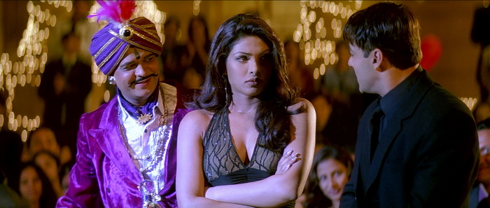 Situé dans la fameuse station balnéaire de Goa (connue de tous depuis KUCH KUCH HOTA HAI), voilà une comédie sans prétention et sympathique qui vous fera passer un bon moment pour peu que vous ne soyez pas trop regardant sur le scénario, d’une banalité assez confondante, ou sur les péripéties « gagesques » d’une finesse exemplaire digne des plus belles heures de la comédie cantonaise… Cela dit le film est assez malin dans le sens où il n’essaie pas de péter plus haut que son QI, utilisant à bon escient les pas très subtils Salman Khan et Akshay Kumar (les deux gros musclés les plus célèbres du cinéma hindi) qui sont parfaitement à leur place ici, bien plus que quand ils essaient de jouer les jeunes premiers romantiques (par exemple dans HUM DIL DE CHUKE SANAM et KHAKEE). En face d’eux ils ont Priyanka Chopra, qui prouve (comme Esha Deol dans DHOOM, DUS et NO ENTRY) que beauté et charisme ne vont pas forcément toujours ensemble (mais pour être gentil on dira qu’ici elle fait bien ce qu’elle a à faire…).