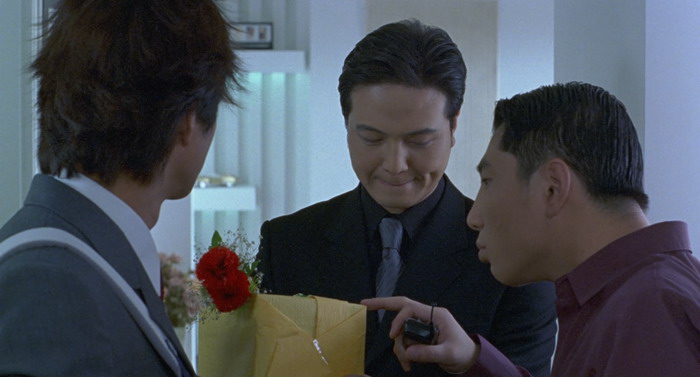 Cette partie comédie est d’ailleurs très plaisante avec par exemple des scènes où le héros, normalement boss de triade, se fait frapper par ses camarades de classe, la scène où le gars en imperméable se met à faire de l’exhibitionnisme ou encore la scène où l’un des membres de la triade n’arrête pas de se prendre des coups par son supérieur car il ne dit que des conneries. Puis bizarrement, après environ 1h de film, une coupure assez nette se fait ressentir et le film vire au drame. Le problème avec cette partie est qu’elle survient d’un coup et cela « choque » un peu car cela ne va pas du tout avec le ton du film. Elle permet en fait d’amener le fight final dans lequel, malgré une violence des coups assez prononcée, la comédie refait surface de temps en temps.