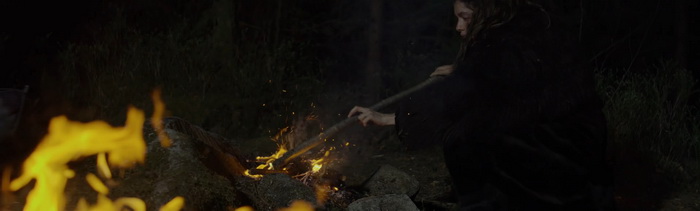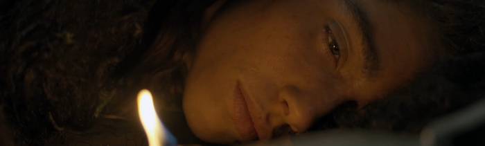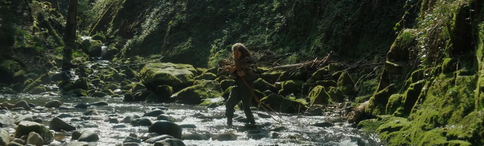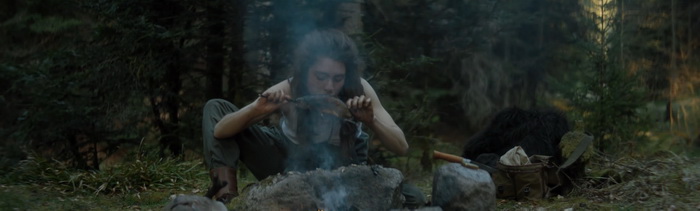 L’aspect survie est lui aussi minimaliste. Notre héroïne ne va pas se battre contre un ours et ne va pas vivre des aventures extraordinaires. On va simplement la voir essayer de se réchauffer, de se nourrir, de boire de l’eau, de se laver, de se laver et essayer de communier comme elle le peut avec cette forêt. Cela peut paraitre basique, mais il n’y a pas besoin de plus car le réalisme de cette survie est largement suffisant. On ressent aisément le côté épuisant et la dimension physique que cela peut représenter, en partie grâce à la performance assez fascinante de l’actrice Manya Muse, au centre de presque tous les plans, qui arrive très facilement à faire ressentir sa vulnérabilité face à la nature hostile. Le rythme très lent de Natura est quelque chose à prendre en compte avant de se lancer dans le visionnage. Il n’y a pas ou peu d’action ici, les plans durent, parfois même sur des moments de survie qui peuvent sembler insignifiants, et l’ensemble peut s’avérer déroutant. D’autant plus qu’on a l’impression qu’il manque certains éléments de contexte, avec des questions comme pourquoi ce cerf, pourquoi ce chalet lors du final. Des questions qui ne trouvent réponse que lorsqu’on regarde les scènes coupées présentes sur le blu-ray de L’Etage du Dessous et qui, à en croire la durée de 1h alors que des sites comme Allociné ou IMDB annoncent 1h10, semblaient présentes dans le montage proposé dans les festivals et en salles. Mais pourtant, l’expérience sensorielle proposée par Natura vaut le voyage et même si, à n’en pas douter, le film doit être encore plus impressionnant en termes d’immersion sur un écran géant de cinéma, on reste absorbé par ces images, bien confortablement installé sur notre canapé. On ne peut que souligner l’audace de L’Etage du Dessous de nous permettre de découvrir Natura, un film à la narration inhabituelle et surtout une ode à la vie sauvage.