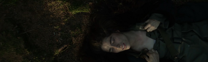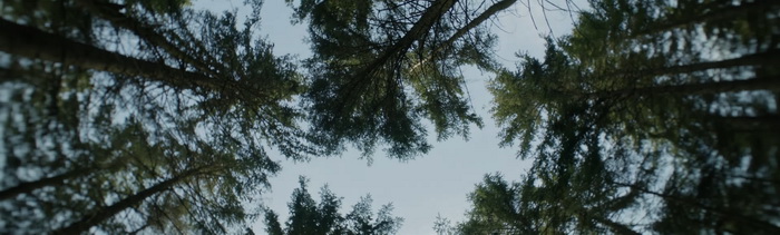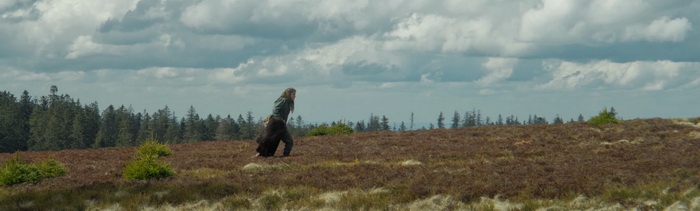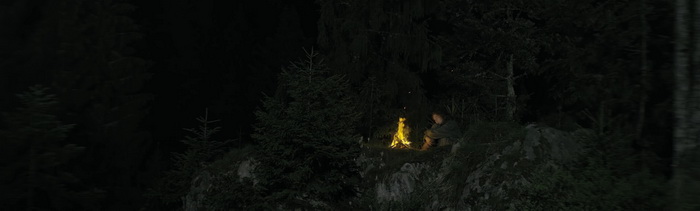 Natura nous raconte la survie d’une jeune fille allemande dans une forêt bien dense, après qu’elle ait fuit des soldats américains à la fin de la Seconde Guerre Mondiale. Sauf que la guerre, ce n’est pas ce qui intéresse Mickael Perret. C’est évoqué, oui, il y a même un soldat avec un fusil sniper qui poursuit notre héroïne, mais on ne le verra qu’à une paire de reprises. Ce qui intéresse le réalisateur, c’est la nature, et la survie de cette jeune fille dans cette immensité verte hostile, non pas par ses animaux sauvages, mais par la rudesse du décor. La première chose qui marque, c’est le visuel du film. Perret opte pour le naturalisme, avec une lumière naturelle aucunement retouchée qui confère au film une ambiance particulière, parfois presque mystique. Mais surtout, il opte pour un format d’image rarement vu, ultra-large (3.30:1) qui accentue l’immensité de cette forêt, surtout lorsqu’on l’oppose à la fragilité de l’héroïne qui évolue dans ces décors. Ce format donne l’impression que le personnage est écrasé par le poids de cette immensité, et la forêt en devient un personnage à part entière, une entité vivante aussi dangereuse que pleine de ressources pour le personnage central. A cela s’ajoute un gros travail sonore, avec des craquements de branches, le souffle du vent et des bruits des animaux vivants en ces lieux qui viennent amener une certaine tension, nous rappelant que l’héroïne n’est qu’un grain de sable dans l’immensité de cette forêt dans laquelle elle évolue. La superbe musique de Cyriak, qui sait se faire discrète lorsque le contexte le demande, vient encore plus renforcer l’aspect immersif de l’ensemble. Comme le film ne comporte quasiment aucun dialogue, Natura devient rapidement une expérience sensorielle où le contexte historique n’a au final que peu d’importance, où la survie n’est là que pour confronter l’humain à l’immensité de cette nature sauvage. On se sent littéralement imprégné par cette forêt vosgienne et on ne peut que saluer le travail de Mickael Perret qui a assuré lui-même une grande partie des postes techniques du film (réalisation, image, montage, …).