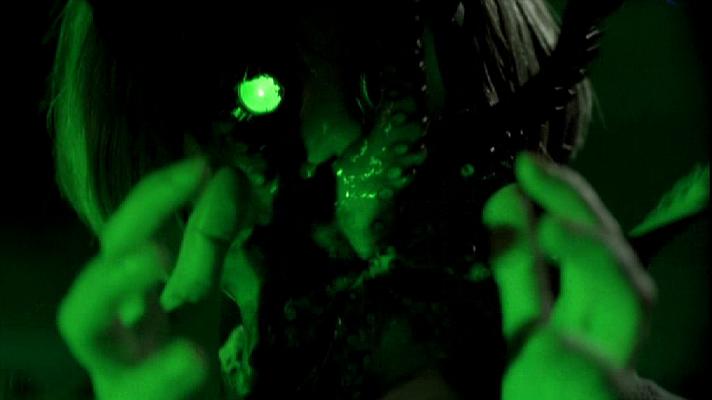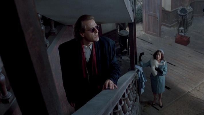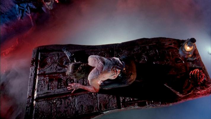 Le premier segment qui nous est proposé est réalisé par Christophe Gans. Il s’agît de sa première réalisation, avant de devenir celui que l’on connaît, l’auteur de Crying Freeman, Le Pacte des Loups et Silent Hill. Il fait donc ici ses débuts derrière la caméra, avec un talent certain. Comme il l’explique lui-même dans diverses interviews, entre l’écriture, la préparation du tournage et la fin du tournage lui-même, il ne s’est pas écoulé beaucoup de temps, et pourtant, à l’image, tout semble parfait. L’ambiance est gothique, rappelant certains films de la période Hammer, ou encore certains films italiens des années 60, comme ceux de Mario Bava. Le sketch de Gans, racontant finalement une histoire tout ce qu’il y a de plus classique, reste saisissant de bout en bout, et on arriverait presque à qualifier Bruce Payne (Full eclipse, Warlock 3) d’acteur convainquant (ce qui n’est pas le cas). Celui ci hérite d’un vieux château en ruine, et va découvrir le triste passé de sa famille, en particulier de Jethro, qui a perdu sa femme et son enfant lors d’un naufrage, et qui décida de les ramener à la vie en utilisant les formules contenues dans le Necronomicon. Décors sublimes, musique en adéquation avec les images (signée Joseph Lo Duca, compositeur de la saga Evil Dead), effets spéciaux réussis, Gans se permet déjà dés cet essai des hommages aux films qu’il aime, en passant par le cinéma italien ou encore les films de John Carpenter. Si certains effets spéciaux ont pris un coup de vieux, ce segment reste un très bon moment malgré un scénario quelque peu prévisible et simpliste.