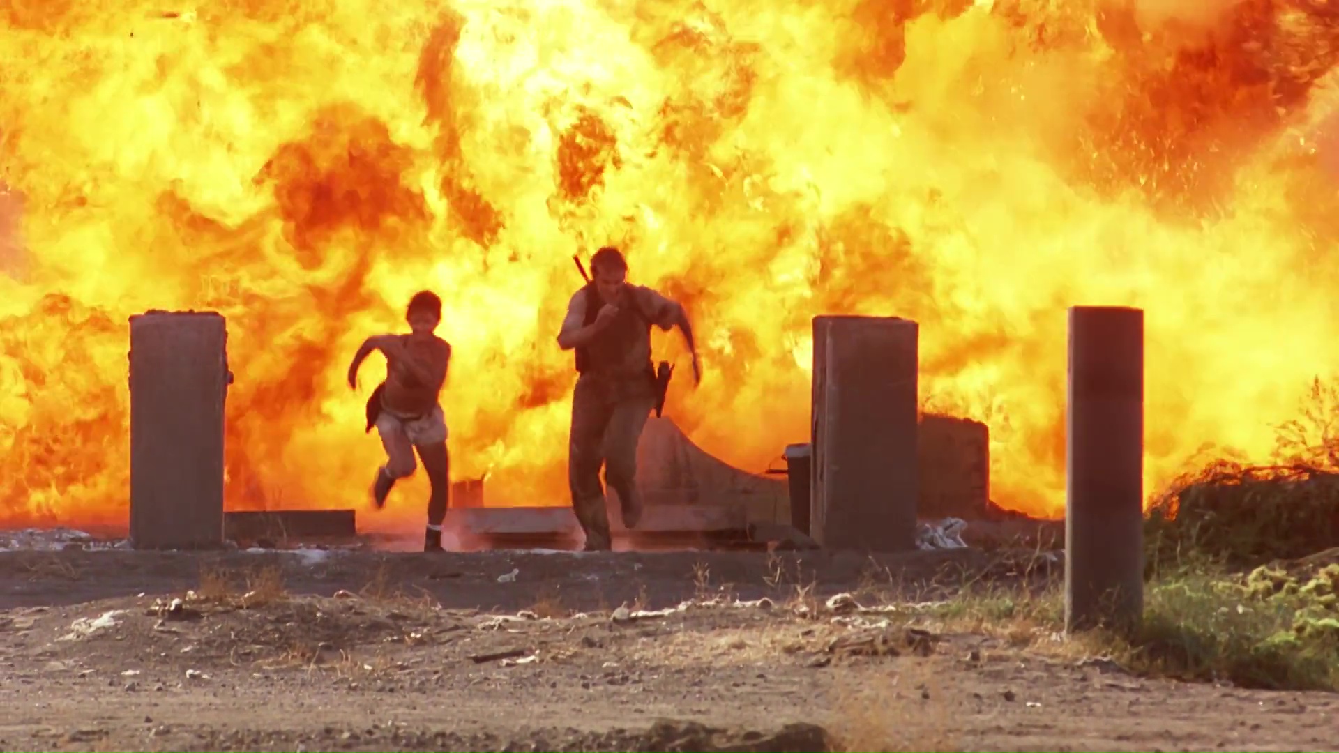 On pourrait qualifier la filmographie de ce bon vieux Albert Pyun de « seconde zone » tant le bonhomme a œuvré dans le milieu de la série B voire Z, employant tous les acteurs « périmés » (Christopher Lambert, Steven Seagal, Charlie Sheen), en fin de carrière (Rutger Hauer, Lance Henriksen, Dennis Hooper) ou rappeurs (Ice T, Snoop Dogg) lui passant sous la main. Pourtant, si on s’intéresse un peu à sa biographie, Albert Pyun est un ancien assistant de Takao Saito, directeur photo d’Akira Kurosawa. Et lorsqu’on regarde Nemesis, on se rend très vite compte que, malgré le faible budget, il est très loin d’être un manche à la mise en scène. Mieux encore, certains passages sont visuellement extrêmement réussis, le bonhomme n’hésitant pas à taquiner du plan séquence plutôt osé, avec une maitrise de la steady-cam qui fera rougir bon nombre de réalisateurs. Et puis ah la la le bon vieux temps où il n’y avait pas cette image de synthèse parfois un peu trop envahissante, et que du coup, lorsqu’il fallait faire péter une usine entière, on la faisait vraiment péter, que lorsqu’il fallait faire s’effondrer une cheminée industrielle, ca se calculait au millimètre près histoire que les acteurs ne risquent pas leur vie…