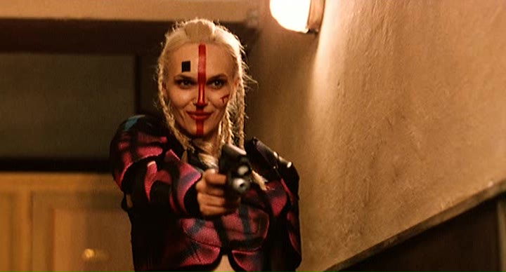 L’univers est très sombre, et malgré un manque de budget évident (certains lieux rudimentaires, certains effets spéciaux qui le sont tout autant), l’ensemble propose quelque chose d’assez unique pour l’époque. L’équipe de choc composée donc de Christophe Lambert, du pirate Joystick joué par Segio Rubini (doté de deux yeux robotisés) et de Naima (Stefania Rocca, vue dans The Card Player) fonctionne bien, malgré le nombre de blagues très présent entre eux, ce qui surprend quand l’on remarque le ton assez sombre du métrage et de son visuel, et du cheminement du héros, hanté par le départ de sa petite amie (jouée par Emmanuelle Seigner). Un contraste qui fait un peu douter au final des intentions du métrage. Produit de SF sérieux et sombre voulant nous questionner ? Petit film fun et sans prétentions ? Je ne saurais dire au final. À part que j’ai passé un bon moment avec ce Nirvana, en compagnie de Jimi, de sa création Solo qui ne fait que mourir sans arrêt dans le jeu (punchlines à l’appui), dans cet univers mystique souvent assez dégradant et dégradé. Assurément pas un grand film de science fiction ou d’anticipation, mais un bon moment !