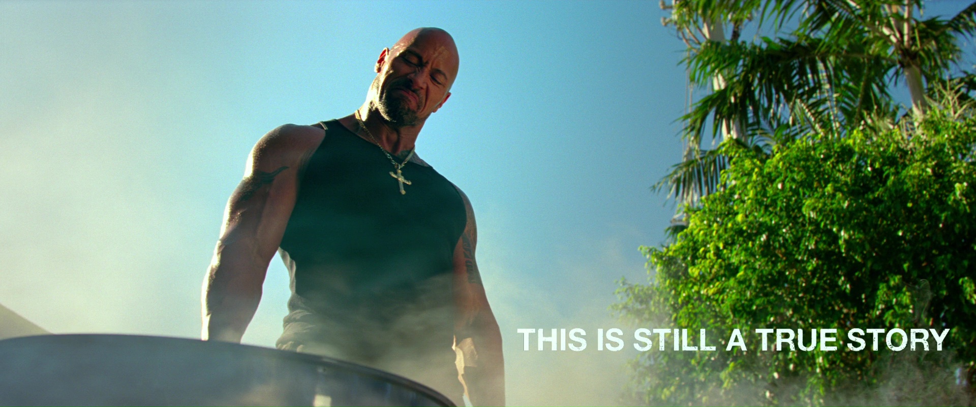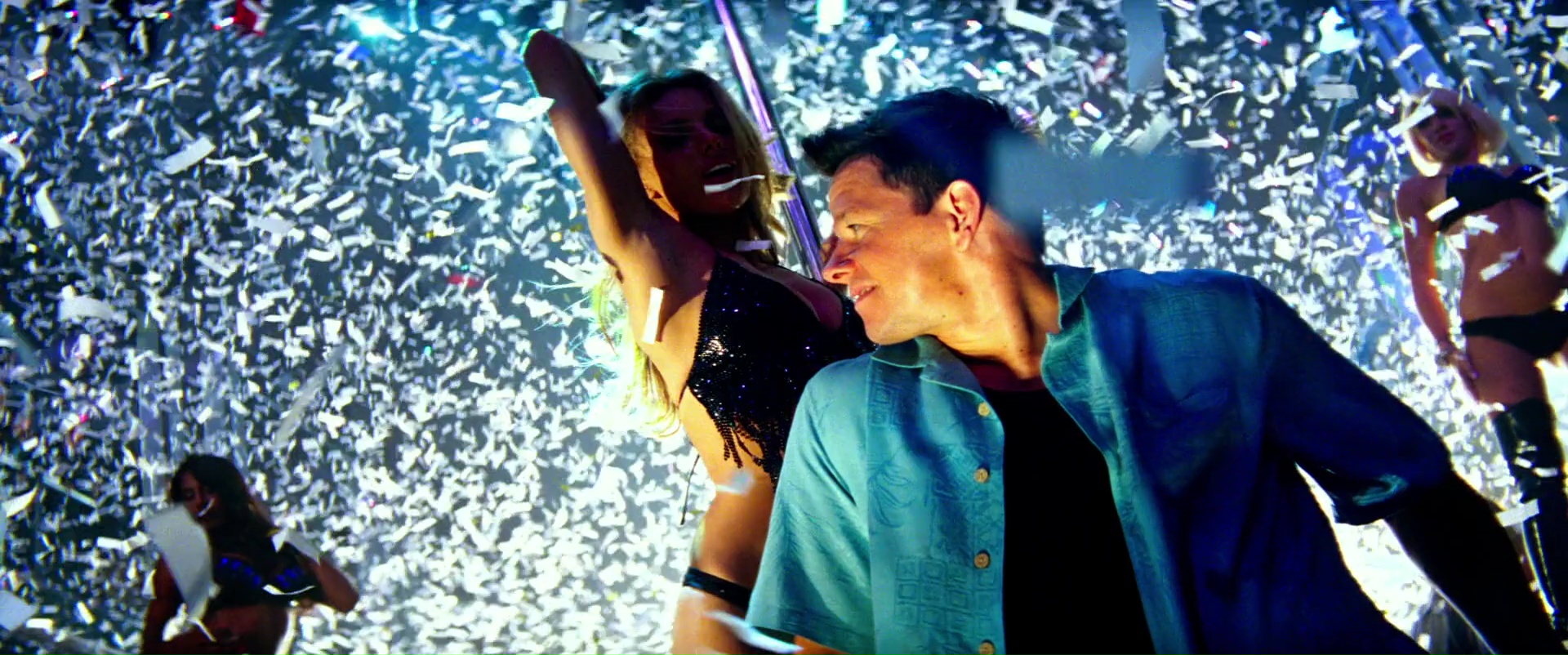 Et s’il est vrai que l’équipe du film prend des libertés avec l’histoire vraie (le coup du barbecue avec des mains humaines, hilarant, mais clairement fictif), ils restent pourtant fidèles à la stupidité générale de l’affaire, puisqu’en réalité, la bande laissera apparemment des preuves irréfutables et écrites de leurs méfaits sur des lieux fouillés par la police, lieux qu’ils autorisent à fouiller, rien que ça. Le côté grotesque de l’œuvre ressort à chaque instant, augmentant même au fur et à mesure, dés que notre équipe croit avoir réussie le coup du siècle, avant de dépenser sans compter et de devoir planifier dans l’urgence la plus totale un nouveau coup. Michael Bay, avec une telle base, peut se faire plaisir, augmentant les traits, en faisant des tonnes dans sa mise en scène, tout en réutilisant certains tics de mise en scène (le classique avion passant à raz des bâtiments, la caméra qui tourne sur 360 degrés dans deux pièces différentes). Mais finalement, là où No Pain No Gain trouve sa plus grande réussite, ce sera dans son casting. Le trio de tête, et en particulier Dwayne Johnson, est énorme et investi, et on retrouve dans des seconds rôles quelque valeurs sûres : Ed Harris (qui revient chez Michael Bay après The Rock) en détective privé d’abord sceptique puis investi, Rebel Wilson en nymphomane sceptique malgré les situations étranges, Ken Jeong en commercial bien WTF, ou encore Bar Paly en fille de l’Est un peu (beaucoup) cruche. Tout le monde est à fond, et avec cette histoire horrible tournée en dérision à coup d’humour noir, ça fonctionne très bien, même si on pourra bien dire que la seconde partie est un peu moins drôle que la première, malgré encore une fois des idées énormes (le barbecue, la tronçonneuse made in China). Quand à Michael Bay, sans prouver son génie puisqu’il ne change absolument rien à son style, il prouve en tout cas que ce même style, il peut fonctionner, mais qu’il lui faut le sujet adéquat pour cela.