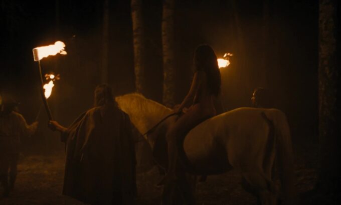 Déjà car il accepte les influences de ses ainés. Avec ses jeux d’ombres et ses silhouettes, il rend clairement hommage à Murnau. De par certains décors, c’est vers Herzog qu’il faut se tourner. Quand au personnage féminin clé, autrefois tenu par Adjani, Lily-Rose Depp semble s’être tournée pour le coup vers Zulawski et en particulier Possession, génial film… avec Adjani tiens. Pour le reste, on trouve du Dracula de Coppola, et bien entendu, le patte artistique millimétrée d’Eggers dans la mise en scène, qui dès l’ouverture, en met plein les yeux. C’est simple, la plupart des plans sont des tableaux qui sont là pour flatter la rétine. Par contre, contrairement à ses prédécesseurs, Eggers fait, à mon sens, un choix audacieux, bien que pouvant diviser là aussi, à savoir de raconter cette intrigue un peu trop connue sous le prisme d’Ellen, Lily-Rose Depp donc. Le film s’ouvre sur elle, son importance est bien plus grande, et son lien avec le vampire, le comte Orlok, trouve une nouvelle signification. Pour le reste, Eggers place quelques acteurs que l’on apprécie (enfin, moi en tout cas) pour les rôles importants, comme Nicholas Hoult pour Thomas, qui va voyager jusqu’en Roumanie pour faire signer le fameux contrat au comte, ou Aaron Taylor-Johnson dans le rôle de son meilleur ami. Amusant, vu que Hoult jouait l’année précédente dans Renfield, où Dracula était, là, joué par Nicolas Cage. Mais le ton entre les deux films sont opposés, évidemment, chez Eggers, tout est premier degré. Willem Dafoe, qui apparaît pour la troisième fois chez Eggers, semble lui venir directement des autres films du metteur en scène d’ailleurs. Et en parlant de ça, il y a ce passage, en début de film, dans une auberge Roumaine, où Thomas est témoin de quelques cultes qui rappellent, dans leur ambiance, un certain The Witch.