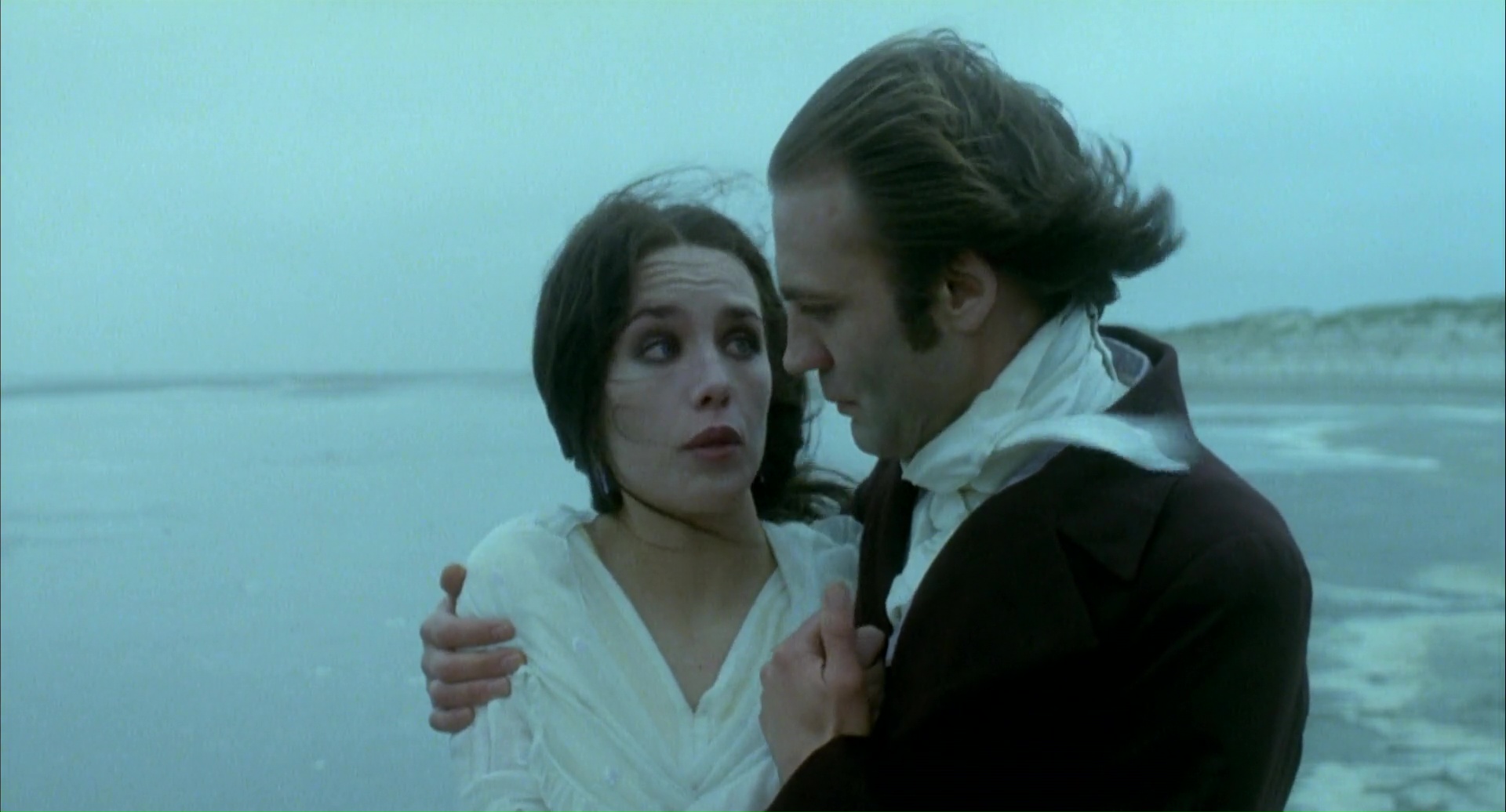 Herzog aime se compliquer la vie donc, entre des scènes à tourner deux fois, la star Klaus Kinski dans le rôle titre (il avait joué le rôle de Renfield dans l’adaptation Les Nuits de Dracula de Jess Franco en 1970), Isabelle Adjani dans le rôle de Lucy. Chose amusante d’ailleurs, Roland Topor qui joue dans le film Renfield, avait vu son roman Le Locataire adapté au cinéma par Polanski en 1976, avec Isabelle Adjani dans le film. Que vaut donc cette nouvelle version de Nosferatu ? Soyons clair, la version de Herzog n’a pas la même puissance que la version de Murnau, véritable chef d’œuvre. Mais Herzog parvient malgré tout à livrer une œuvre puissance, et un classique de cinéma, et ce dés la magnifique scène d’ouverture, avec ces longs plans sur des momies sur la musique de Popol Wuh. Car oui, Nosferatu par Herzog est un magnifique film d’atmosphère, bénéficiant comme toujours d’une photographie sublime, et outre le rajout des noms originaux, Herzog livre plutôt en quelque sorte une extension du film de Murnau plutôt qu’un simple remake, plutôt que de copier. Herzog fait d’ailleurs le choix de rester fidèle au Nosferatu original en laissant certains éléments de Dracula au placard. Oui, ici, le métrage ne se focalise pas sur l’aspect suceur de sang comme dans toutes les autres adaptations, ni sur les personnages de Harker ou Van Helsing, n’ajoute aucun contenu érotique ou romantique (quoi que pour le côté romantique), mais introduit divers éléments du romans, comme la peste, les rats, les gitans.