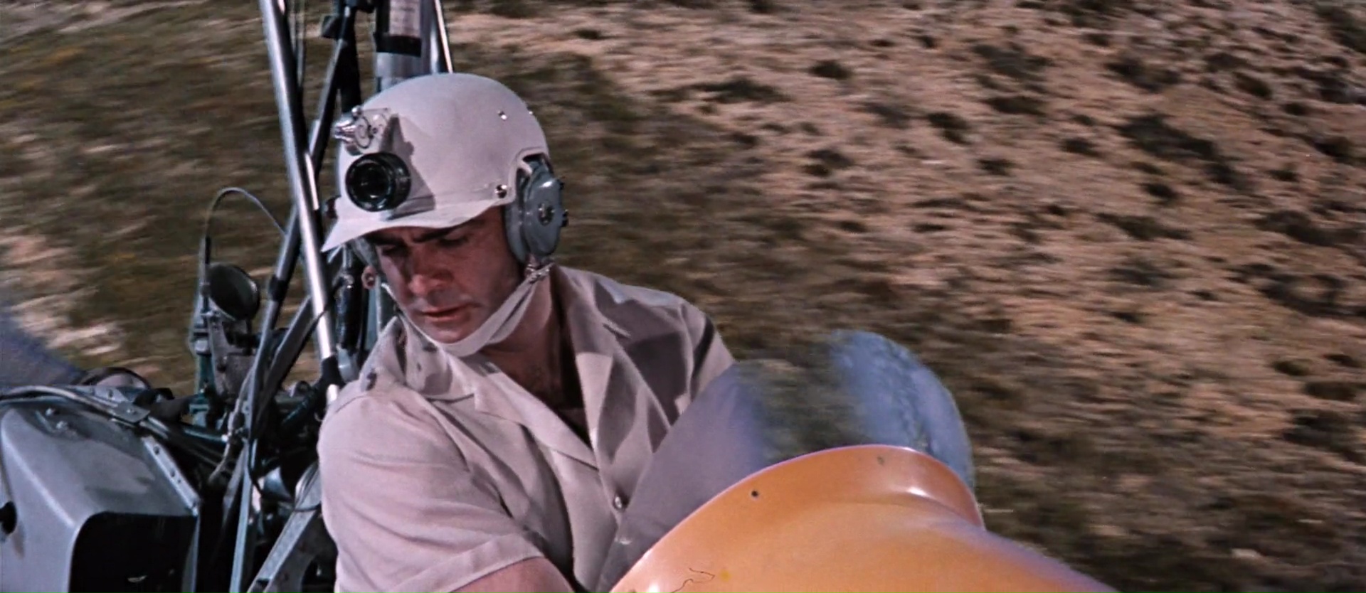 Passé toutes ces bonnes idées, ces bonnes intentions, que vaut On ne Vit que Deux Fois ? Et bien c’est rythmé, on ne s’ennuie pas, il y a même de gros éclairs de génie, des scènes plutôt fun, pleins de Japonaises dans tous les coins de l’écran, des pans de la culture Japonaise plutôt rares pour le souligner (les sumos, les mariages traditionnels). Mais à côté, un certain côté fun mais sans doute involontaire se dégage de l’œuvre. Enfin, dur de savoir si cela est volontaire ou pas au final. Bien que durant 1h57 et étant dans sa première heure assez avare en action à l’exception d’une course poursuite en voiture, le métrage se fait plutôt rythmé et plaisant à suivre. Le scénario ne se préoccupe pas des détails (comment James parvient à simuler sa mort ? On s’en fou), et on l’envois immédiatement en mission. Sur place, tout va vite, il va de rencontres en rencontres, trouve les bons indices rapidement car il est doué, puis le métrage nous offre pour boucler sa première heure une fort sympathique et agréable vraie scène d’action, à savoir la poursuite en hélicoptère. Une scène fun, bien foutue, et la seule à utiliser réellement une multitude de gadgets, puisque le mini hélicoptère de Bond est équipe de lance flamme, de roquettes et autres mitrailleuses. Honnêtement, j’aurais passé un excellent moment devant cette scène. C’est passé cette scène que le film se gâte un peu et accuse alors le poids des années.