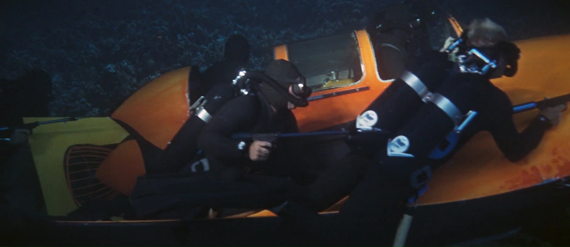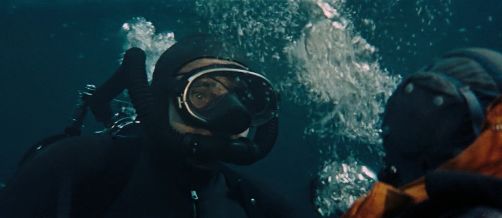 Affreusement longues. James Bond est en vacances, tout le monde cherche à le tuer sans que l’on comprenne pourquoi, mais il garde la patate et parvient même à coucher avec une femme du Spa où il est en vacances. Sacré James. Mais il a beaucoup de chance, puisque ses vacances, il les prend à deux pas de là où l’organisation SPECTRE va faire son prochain coup, à savoir voler deux bombes atomiques en falsifiant l’identité d’un pilote d’avion. Car c’est bien connu, lorsque l’on fait un vol d’essai, on charge vraiment l’avion avec des bombes atomiques. L’avion est du coup forcément détourné, et une demande de rançon est faite. James Bond va donc devoir retrouver dans un délai donné les bombes. Et là, on se rend compte que oui, cela fait déjà presque 50 minutes de film ! Opération Tonnerre attend 50 minutes avant d’envoyer James en mission ! Moi qui gardait espoir qu’avec le budget plus que doublé de 9 millions (le précédant avait coûté 3 millions, et le premier seulement 1) d’en prendre plein les yeux, c’est râpé pour le moment. Mais bon, James part en mission, il reste 1h20 au compteur, le film peut démarrer, et là on trouve de bonnes choses. Comme de très belles scènes sous-marine, ou Claudine Auger, très belle Bond Girl, qui va résister pendant un temps aux charmes de James. Mais les rôles féminins s’étoffent doucement dans la saga, et c’est du coup appréciable, pour l’histoire, comme pour les yeux. L’action sera elle souvent sous l’eau, puisqu’après tout, c’est le concept avec lequel on nous vend le film. Donc qu’est ce que ça vaut ? Techniquement, c’est franchement pas mal.
