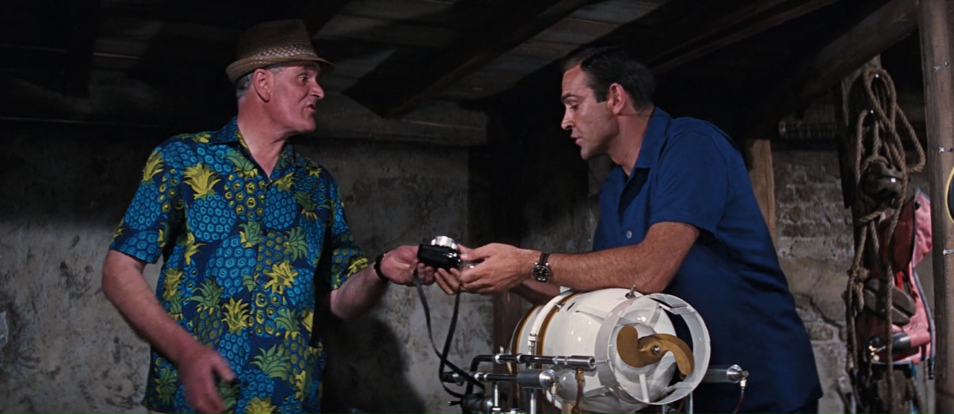 Tourner autant de scènes sous l’eau en 1965, avec une aussi belle photographie, une technique bien léchée, c’est superbe. Le souci par contre, c’est qu’à vouloir trop en faire, on en a marre. Plus long, plus compliqué, plus de scènes sous l’eau, plus de trahisons, plus de personnages. Pas mal de personnages débarquent dans l’aventure mais ne servent en réalité à rien, si ce n’est amener un élément de scénario. Scénario qui d’ailleurs se traîne en longueur, et ne sait pas toujours gérer son rythme. Parfois, tout va vite et on a même l’impression de manquer certains éléments, que le film passe d’un élément à un autre avec trop de fluidité, alors qu’à d’autres moments, voilà que l’on se tape des scènes qui s’éternisent et ne veulent vraiment pas passer à autre chose. Quand au méchant, s’il est très bien joué par Adolfo Celi, son rôle n’a en soit rien de marquant. D’ailleurs, le plan général dans le métrage n’a pas l’air extrêmement bien pensé vu sa complexité et ses failles. Alors quand ce même méchant veut torturer une fille pour la faire parler et que ses seuls moyens de pression sont des brûlures de cigarettes et des glaçons sur la peau, mouais… Et le final, parlons en. Après une intrigue de quasi deux heures, le métrage a la bonne idée de nous ramener encore une fois sous l’eau. Vous savez, l’eau, là où tous les mouvements paraissent lourds et lents. Rien à faire, après deux très bons opus, Opération Tonnerre a du mal à tenir la distance, surtout après Goldfinger. Pas totalement mauvais, mais bancal et mal rythmé.
