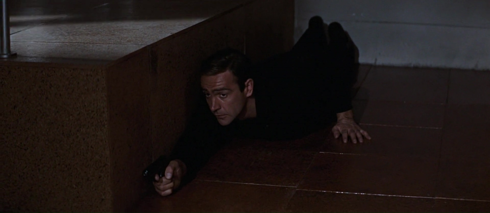 Je dois avouer que les premiers James Bond m’ont surpris. Après un premier opus qui m’avait ennuyé et deux opus que j’avais trouvé excellents, à savoir Bons Baisers de Russie et Goldfinger, la saga continue en 1965. La production n’aura pas perdu de temps, et il faut dire que Goldfinger est apprécié par la critique et le public, et est un carton au box office. On propose à son réalisateur de revenir, mais trop épuisé, il refuse, et c’est donc Terence Young, réalisateur des deux premiers opus, qui revient. Richard Maibaum reste au scénario, Sean Connery bien entendu est toujours là, tout comme M, Moneypenny et Q à ses côtés. Et ce coup-ci, on adapte un nouveau roman de Ian Flemming, à savoir Opération Tonnerre. Qui devait au départ être le tout premier opus de la saga, mais quelques petits soucis de droits fit de Dr No ce premier opus. Et le premier truc qui m’aura fait peur en lançant le film, ce fut sa durée. 2h10 ! Soit le plus long jusque là. Ils avaient intérêt à ne pas se planter, car 2h10, ça peut paraître long des fois. Et au final, il y a d’excellentes choses dans Opération Tonnerre. Beaucoup même… Mais la faute sans doute à un mauvais dosage, le métrage m’aura ennuyé. Enfin non, disons plutôt que ça ne m’a pas vraiment passionné, car la vision ne fut pas non plus déplaisante. Et pourtant ça commençait très bien avec cette scène d’ouverture suivie d’une fuite en jetpack, le tout en France, avant un générique certes un poil moins bon que le précédent mais malgré tout, tout à fait correct. Puis nous rentrons dans le vif du sujet. Enfin plus ou moins, car soyons clairs, les 45 premières minutes du métrage sont longues.