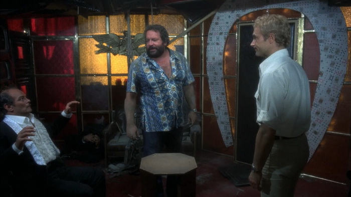 Acteurs : Bud Spencer, Terence Hill, Luciano Catenacci, Marisa Laurito, Kim McKay, Sal Borgese, Jerry Lester, Woody Woodbury, Carlo Reali, Riccardo Pizzuti, Giancarlo Bastianoni