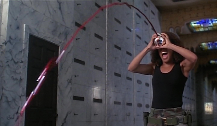 Il fait donc également revenir Bill Thornby, jouant Jody, le frère décédé de Mike dans le premier opus, et en profite pour agrandir le background du Tall Man, et de tout ce qui l’entoure, à savoir, les nains, les sphères tueuses. Bingo, grâce à ces éléments, mais également à quelques nouveaux personnages, Phantasm 3 se fait extrêmement rythmé en plus d’être intéressant. On découvre ici le jeune Tim (Kevin Connors, vivant seul malgré son jeune âge puisque le Tall Man lui a enlevé sa famille, et Rocky (Gloria Lynne Henry), une jeune femme plutôt douée au corps à corps qui ne laissera pas Reggie insensible. Et clairement, Reggie est la star de ce troisième opus. L’intrigue se focalise sur lui, à la recherche de Mike, rencontrant de nouveaux personnages. Mais Coscarelli va encore plus loin au niveau des ajouts, et tout ne fonctionnera pas malheureusement. S’il parvient à rythmer parfaitement son film, à alterner scènes musclées et scènes plus oniriques comme dans le premier opus, il rajoute quelques éléments qui n’avaient pas forcément leur place dans l’univers Phantasm, comme de l’humour, et… des zombies.
