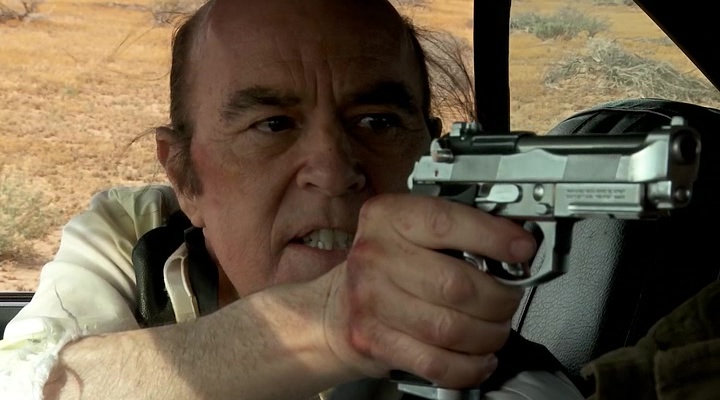 Entre cette annonce, des négociations pour un reboot avec New Line Cinema en 2005, des rumeurs finirent par arriver en 2012. En effet, Don Coscarelli aurait filmé, enfin, écrit et produit un nouveau Phantasm, tourné en cachette en 2012 et 2013 par David Hartman. Et finamement, c’est en 2014 que l’annonce de la finition du film débarque, avec en plus, un trailer, faisant à la fois vibrer le fan, mais faisant également peur. L’attente allait être longue, puisque c’est finalement le 4 Octobre 2016 que débarque enfin Phantasm Ravager ! 18 ans après le quatrième opus, 37 ans après le premier opus, et malheureusement, 10 mois après le décès de Angus Scrimm, l’acteur emblématique du Tall Man dans la saga. Bref, je m’égare avec cette longue introduction témoignant de mon amour pour Phantasm. Que vaut ce Phantasm Ravager ? Le fan à l’intérieur de moi dira qu’il a eu ce qu’il voulait. Le cinéphile lui sera par moment un peu plus sévère. Phantasm Ravager s’adresse aux fans (Phans), et à eux avant tout ! Des fans là depuis longtemps, qui sauront, comme à l’époque du premier film, pardonner les défauts évidents de l’œuvre pour vivre une nouvelle et dernière aventure surréaliste aux côtés de Reggie, Mike, Jody et du Tall Man. Car des défauts, ce Phantasm Ravager en a. Des tas ! Mais le fan lui, dés la première image, aura des frissons, en entendant le fameux thème du film, et en voyant Reggie avancer dans le désert, en direction de la caméra, tenant dans la main son fameux double fusil à canons sciés (oui, donc, quatre canons !).