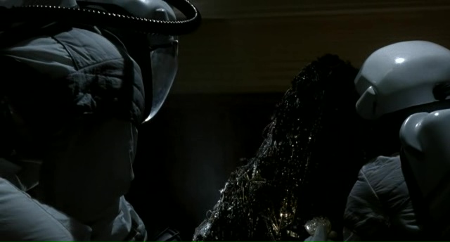 Oui, Phantoms tire son épingle du jeu quand il joue sur l’ambiance, sur le mystère, et devient beaucoup plus bancal et typé série B dés que l’action débarque. Car on aura droit à un mix maladroit de numérique (dégueulasse) et d’effets spéciaux forts convaincants sur le plateau, mais mis en scène par Chappelle, cela donne surtout du potentiel gâché, à coup d’éclairage bleu clignotant non stop, de caméra qui s’emballe, et c’est dommage. Pour autant, la première heure se suit très bien, puis la dernière demi-heure vient décevoir encore plus. L’ambiance est absente, les clins d’œil se multiplient, autant envers d’autres films (la transformation du chien fait beaucoup penser à The Thing) que des romans (certaines créatures font clairement penser à du Lovecraft), mais les enjeux sont vite expédiés, certains personnages laissés lamentablement de côté, et jamais Phantoms n’arrive à se démêler de son étiquette de série B sympa sans plus. Il y avait pourtant un fort potentiel ici, que l’on aperçoit par bribe et notamment dans la première demi-heure, mais l’exécution est loin d’être parfaite. Pour autant, Phantoms aura inspiré un monument de l’horreur sur un autre support : Silent Hill. Oui, une ville vidée de ses habitants, des créatures étranges, un papillon géant… Comme dans le premier jeu sorti en 1999 !