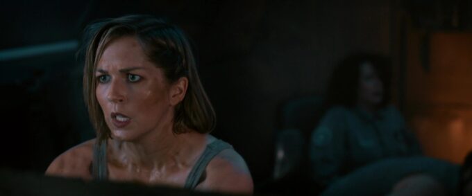 Donc dans Planet Dune, on a du désert (qui ne semble pas toujours être du studio, bon point), des couleurs oranges, ce qui manquait un peu au Dune de Villeneuve, des vers numériques ratés qui ont la même gueule que dans Tremors, clairement, des scènes dans des grottes, un équipage qui ne s’entend pas histoire d’amener quelques conflits dans l’histoire, un mec qui va chevaucher un ver (ça vous rappelle quelque chose ?), et une actrice principale qui fait ses gros yeux pour jouer la surprise, fait la moue quand elle n’est pas contente, mais qui, au-delà de son manque de talent et de naturel, a l’air d’y croire et se donne à fond. Dommage qu’en jetant un œil à sa carrière, on remarque depuis 2019 au moins 3 ou 4 productions The Asylum… Ça ne va pas l’aider à s’améliorer tout ça. Mais voilà, vous comprenez le souci du film. Ce n’est pas bon, le film a clairement été fait pour surfer sur le succès de Dune, et a donc été fait pour de mauvaises raisons, on a du mal à prendre les personnages et les situations au sérieux, mais ce n’est pas le bas des productions Asylum. Est-ce qu’ils s’améliorent ? Non, ils ont sans doute juste un poil montés le budget ! Est-ce que ça mérite qu’on s’y attarde ? Non, le Villeneuve était en salles quand Planet Dune sortait, et la partie 2 sera là dans quelques temps. Si vous voulez souffrir par contre, vous pouvez toujours tenter le double programme Planet Dune et Dune World. À voir si vous en sortez indemne !