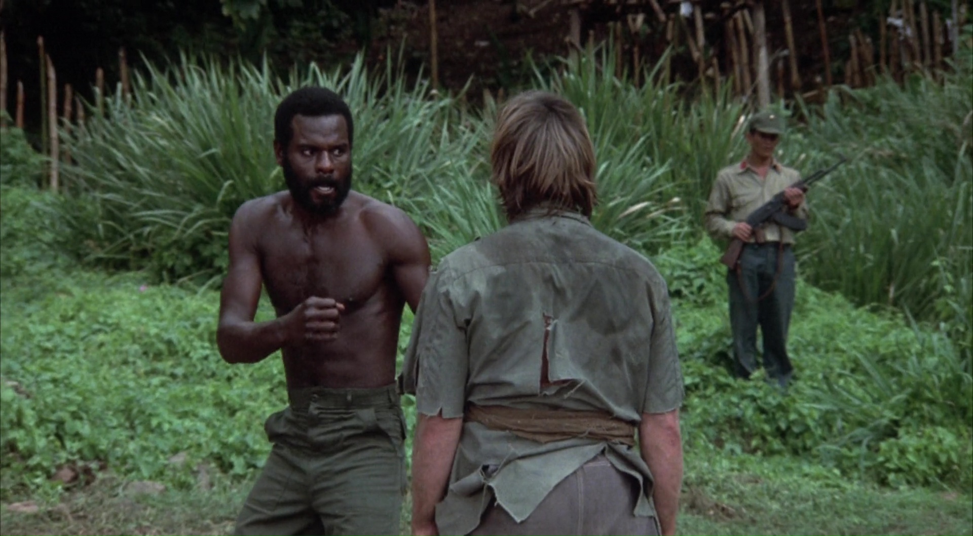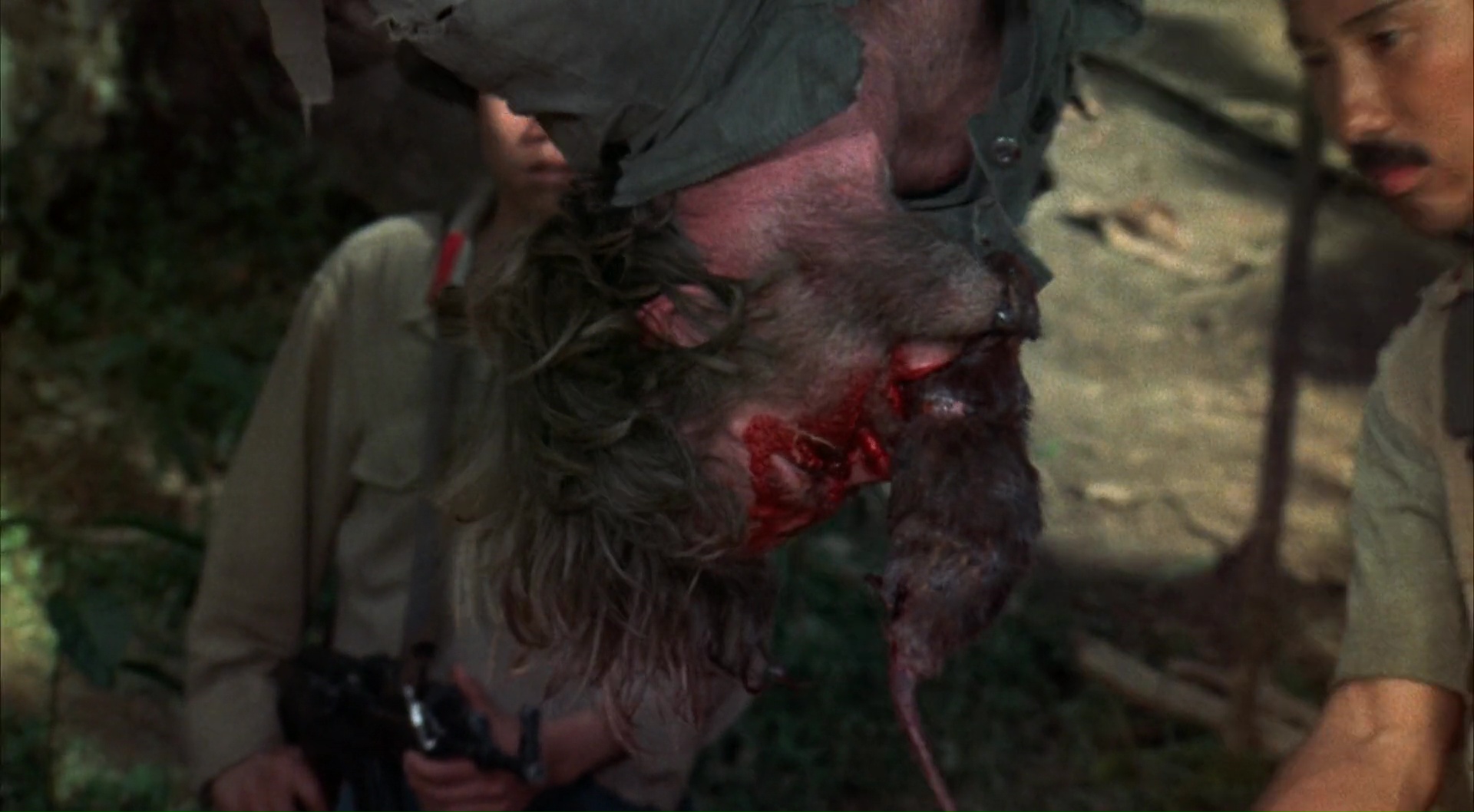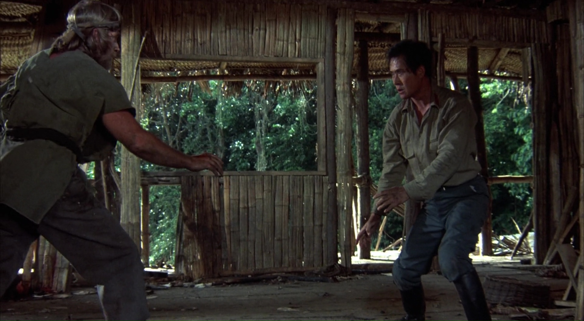 Bref, dés le générique, Chuck, enfin, Braddock donc, et son équipe sont capturés, et se retrouvent dans un petit village paumé géré par un général qui va torturer, physiquement et psychologiquement la fine équipe. Son but est de briser Braddock, et rien de plus. Pas d’échanges possibles, rien. Juste l’humilier, lui donner de faux espoirs, le voir au sol ne pas se relever. Mais c’est mal connaître Chuck, qui tient le coup, même quand son équipe passe l’arme à gauche. On aura droit aux mensonges, aux maltraitances par les gardiens, aux combats, aux tentatives de manipulations, aux faux espoirs avec la promesse d’un retour au Pays, à divers sévices physiques ainsi qu’au bien connu jeu de la roulette russe. Du classique, mais finalement plutôt bien mené, on ne s’ennuie pas une seconde devant le spectacle proposé (comparé au premier film), et même s’il est difficile d’avoir peur pour Chuck, il s’en sort plutôt bien ce coup-ci pour nous faire croire un minimum à son personnage. Et ça, c’est plutôt sympathique, et on ne s’y attend pas vraiment. Bien entendu, Portés Disparus 2 est et restera avant tout un film d’action de son époque, où les Américains vont finir par gagner, seuls contre tous quoi qu’il arrive. Une époque où le cinéma Américain voulait à tout prix exorciser l’échec du Vietnam et ses conséquences, en montrant l’Amérique et ses soldats victorieux. Du coup, après une heure en prison, une heure à souffrir, il est l’heure pour Chuck de s’évader, mais surtout, car ce ne serait pas drôle sinon, de se venger. Et là il n’y va pas avec le dos de la cuillère le Chuck, oh non.