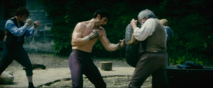 Alors oui, il y a des choses sympathiques dans Prizefighter, à commencer par la présence de Russel Crowe (Gladiator). Certes, ce dernier ne semble pas toujours à fond dans ce qu’il fait et se contente de faire ce qu’il sait faire sans grand entrain, son charisme et sa présence massive font qu’il apporte toujours quelque chose aux films dans lequel il apparait. Certes, son temps de présence est limité mais qu’importe. On pourra également souligner la réussite du film pour dépeindre le côté sordide de la vie dans l’Angleterre Victorienne où la classe supérieure, raffinée et distinguée, utilisait les souffrances de la classe ouvrière comme source de divertissement. Malheureusement, il y a beaucoup d’ombres au tableau à commencer par Matt Hookings qui n’est au final pas très convaincant, manquant clairement de charisme pour incarner ce genre de personnage principal dont on raconte la vie. Certains personnages secondaires sont également tout bonnement sacrifiés, sans aucun développement. Un biopic du genre a besoin de développement, d’un minimum de profondeur mais aussi de construction, et sur ce dernier point, c’est également un peu problématique avec un scénario parfois bien trop rapide. La transition entre le Jim Belcher enfant et le Jim Belcher adulte se fait en une fraction de seconde et on a l’impression qu’il manque tout un pan de film. Le film se concentre beaucoup trop sur les excès que sa renommée a apporté à Jem Belcher et sur l’espoir de rédemption, mais il en oublie de s’attarder sur certaines étapes clés de sa vie. Et au final, le scénario devient assez fainéant, finissant par calquer celui de Rocky. Mais ce qui semble le plus étrange dans Prizefighter, c’est son visuel aux couleurs beaucoup trop saturées. On sent que le but est de donner un certain style visuel, mais ces couleurs poussées à l’extrême jusqu’à presque virer au fluo donnent un look très étrange au film ne nous donnant pas l’impression d’être en 1800. Il y a certes des éclairages sympathiques, avec des jeux d’ombre / lumière intéressants, mais l’ensemble est visuellement trop artificiel, comme si on avait voulu rendre le film plus cinématographique mais qu’ils s’étaient tout simplement ratés. Alors, oui, Prizefighter se suit malgré tout sans déplaisir, en partie grâce à des acteurs comme Russel Crowe et Ray Winstone (Les Infiltrés, Retour à Cold Mountain), et les amateurs de boxe y trouveront sans doute leur compte. Mais en l’état, c’est un semi-ratage.