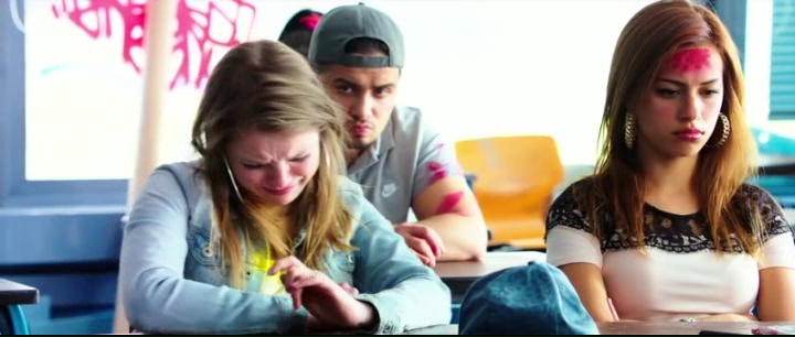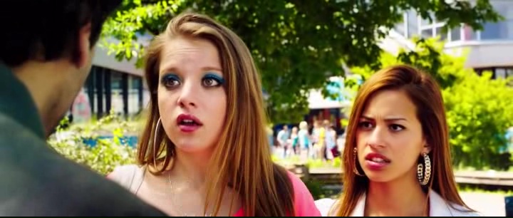 On pourra même trouver que l’acteur à un petit côté Max Boublil dans le look et la gestuelle. Mais les autres ne sont pas en reste. Karoline Herfurth est également excellente dans le rôle de la prof un peu paumée, peu autoritaire, dépassée et un peu vieux jeu. L’alchimie entre les deux fonctionne super de la première rencontre jusqu’à la dernière image du film. Un bon duo, opposé, et qui va donc forcément se rapprocher. Et le clou bien entendu, ce seront les personnages de Chantal et Daniel « Danger », les deux meneurs de la fameuse classe. Je dois même avouer avoir un faible pour Chantal, pouffe comme pas possible, conne comme… non il n’y a même pas de comparaison possible à ce niveau là. Et le film va à fond dans ces éléments, accentuant tout, tout en se permettant de toucher certains problèmes de l’éducation, mais toujours avec humour, comme les jeunes se foutant de leur scolarité et ne pensant qu’aux futures allocations, les profs qui vivent mal leur boulot et veulent se suicider (en sautant du premier étage attention). Rien n’est épargné, et après ces deux heures, on en sort avec la patate. Les acteurs nous ont fait rire, les situations sont bien trouvées, les personnages excellents, et en plus la bande son donne la pèche. Donc oui, du coup, on a envie de lui pardonner certaines choses, comme une mise en scène passe partout ou une photographie aux couleurs parfois un peu trop vives, ou simplement son déroulement général prévisible. J’ai envie de dire, on s’en fout, on a passé un super moment !