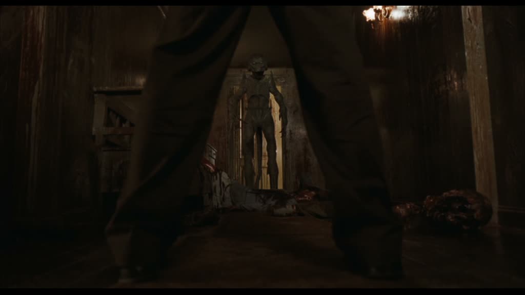 Malgré donc des situations stupides, dont ce que j’aime appeler le syndrome Détour Mortel 3, c’est à dire la capacité des personnages à se couper le pied au couteau (ils n’ont pas d’os eux) et sans souffrir, la chasse du Pumpkinhead sera sans répit et extrêmement sanglantes. Décapitations, morsures, éventration, corps lacérés, le réalisateur ne fait pas semblant et y va à fond. Il gère même plutôt bien son rythme et son film, malgré des personnages pas toujours très intéressants, et surtout très caricaturaux. Le bonhomme, à la fois réalisateur et scénariste, n’est autre que Mike Hurst. Pour les plus curieux, ou les connaisseurs, le bonhomme a réalisé par le passé… House of the Dead 2 (oui, la suite du film de Boll), et écrit le scénario d’une production NU Image au dessus du lot : MosquitoMan. Un bonhomme qui connaît les limites de ce genre de productions mais ne se moque pas de son public. Si la chasse du Pumpkinhead s’avère sans doute la meilleure chasse de la saga (ce n’est pas hyper dur ceci dit), il faut avouer que lorsque le métrage veut développer la petite guerre entre les deux familles, ce n’est pas très subtil (comme d’habitude) et surtout, c’est moins intéressant, comme cette scène où les Hatfield vont brûler la maison des McCoy. Toute la famille sortira de la demeure en feu pour se mettre sur la gueule, en oubliant au passage la femme à l’intérieur, qui attendra quelques minutes avant d’appeler au secours pour que l’on vienne la sauver. Oui, Pumpkinhead 4 n’est pas du grand cinéma, on le savait, mais reste pourtant tout à fait regardable et saura plaire à l’amateur de films de genre, et surtout au fan de la saga, si cela existe.
