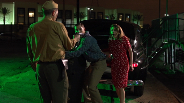 Comme le film ne suit pas totalement le précédent, on tue dès la première scène les personnages survivants du précédent film. C’est vrai, pourquoi s’emmerder avec eux, ils coutaient trop cher. Place à un tout nouveau casting de belles têtes de vainqueurs, tout aussi mauvais mais avec une tête connue de la série B à tendance Z, puisque le héros est incarné par Paul Logan (The Horde, Code Red, Mega Piranha). C’est le seul qui essaie de garder son sérieux dans toute cette mascarade. A noter la présence dans un cameo, celui de « Flamboyant Nazi », du réalisateur David DeCoteau qui a mis en scène plusieurs opus de la saga. Nos marionnettes sont un peu plus actives que dans les miteux précédents opus, et ça c’est plutôt positif. Toujours pas de spécialiste du stop motion à la barre, mais au moins elles font quelque chose d’un peu plus compliqué que tourner la tête. Leur temps de présence reste toujours limité mais voir Blade sortir du ventre d’une victime à la façon de Alien, c’est toujours sympa. La saga renoue ici enfin avec le gore. On a un mix de faux sang et de sang en CGI et, même si on n’est pas dans du Braindead, c’est déjà mieux que les pseudos films pour enfants qu’on avait pris l’habitude de voir. Il y a de la giclée de sang, de la torture, des impacts de balle, … Ce n’est pas toujours bien fait mais vu les tréfonds dans lesquels la saga s’est engouffrée, on se contente désormais de peu. Ce virage gore continuera d’ailleurs dans le 13ème film de la saga, The Little Reich. Ce n’est d’ailleurs pas que le retour du sang, c’est aussi le retour des boobs ! Champagne ! Bon, il y en a peu, mais même chose, c’était devenu famélique à ce niveau-là ! Par contre, là où Charles Band a complètement craqué son slip, c’est sur certains effets spéciaux. Il n’a rien trouvé de mieux sur certains plans, pour palier à l’absence d’animateur pour les marionnettes, que de déguiser des comédiens à l’effigie de certaines marionnettes et de les foutre sur des fonds verts dégueulasses. C’est quoi cette histoire ? C’est ça « on vous promet de meilleurs effets spéciaux » ? On est dans un défilé de cosplay de seconde zone ou quoi ? Surtout qu’à aucun moment ils donnent l’impression d’être des poupées. On tombe clairement dans le lamentable et la fainéantise. On n’est pas dans ce que la saga a pu donner de pire (le Legacy est hors catégorie), mais c’est tout comme.