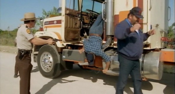 Et donc, qu’est-ce qui ne marche pas dans ce film comme je le précise dans l’introduction ? Plusieurs choses à vrai dire. C’est malgré tout sympathique. On retrouve toujours les mêmes gueules dans les cascadeurs et seconds rôles, Riccardo Pizzuti en tête ; le scénario tout à base de quiproquos et de grosses ficelles volontaires est bon enfant et le mélange avec certaines paroles grossières est assez improbable : fils de pute, rien à branler, trou de balle, pédé, … (à moins que ce soit les doubleurs français qui sont en roue libre) ; les scènes de distribution de mandales et autres gifles aux bruitages cartoon (avec os qui craquent et tout le tralala) ont toujours ce côté régressif très agréable. Mais premier problème, ces dernières sont trop peu nombreuses. Une courte au début puis il faut attendre 1h avant de retrouver ces bastons qui ont fait le succès du duo. Oui, le film manque clairement de rythme et se focalise trop sur les bavardages, certes parfois funs, mais avouons le, on s’ennuie parfois… Mais, autre problème, on a l’impression que nous ne sommes pas les seuls à nous ennuyer. On a l’impression que le duo commence à s’essouffler. On ressent, surtout chez Bud Spencer, un manque d’entrain et une certaine lassitude, avec ce sentiment qu’il s’ennuie royalement. On constatera d’ailleurs un peu la même chose sur leur film suivant, Attention Les Dégâts, du même réalisateur. Elle commence à être loin l’époque Trinita…