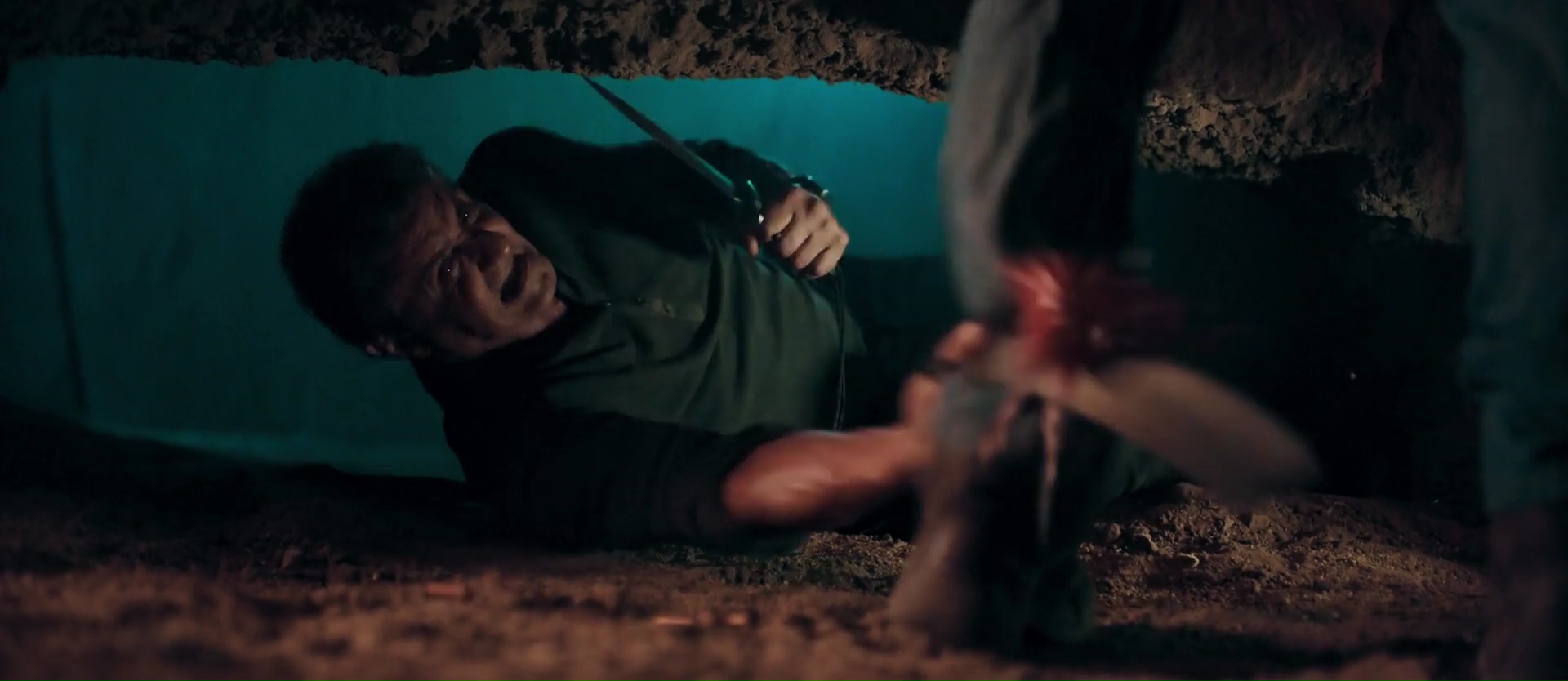 Sauf que ce dernier épisode de Rambo, espérons le, le dernier, trahis quelque peu le personnage, assez rapidement. D’homme traumatisé par la guerre, et toujours forcé à continuer des combats qui ne sont pas les siens, et surtout qui accepte toujours à contre cœur de livrer des combats car c’est la seule chose qu’il sait faire, Rambo devient un homme posé animé par la vengeance personnelle. Rapidement, Gabrielle, en quête de sa famille, et en particulier de son père, se rend au Mexique, et y laissera des plumes, kidnappée par un réseau de prostitution. Bien entendu, c’est à Rambo de reprendre les armes, de la retrouver, et d’obtenir vengeance. Et dans les faits, on se retrouve clairement devant un produit ressemblant plus à du Taken qu’à du Rambo. Alors oui, on y retrouve la violence du personnage, bien que souvent exagérée, au point d’avoir un petit côté comic book, mais c’est bien une des rares choses que l’on semble retrouver du personnage, du moins thématiquement. Même si cette violence tarde à arriver, étant volontairement souvent repoussée, puisque le spectateur sait pertinemment ce dont John est capable. Mais voilà, thématiquement, ce Last Blood n’est pas le plus intéressant qui soit, même si en soit, avec sa courte durée (à peine 1h30), et son rythme relativement bien maitrisée, le spectateur n’a pas le temps de s’ennuyer devant le spectacle proposé. Qu’en est-il techniquement ? Adrien Gunberg (Get the Gringo) est le nouveau réalisateur du film, succédant ainsi à Ted Kotcheff, George P. Cosmatos, Peter MacDonald et Stallone himself. En soit, il livre une copie plutôt propre, si ce n’est l’utilisation du numérique lors de certaines séquences de carnage, ce qui donne encore plus de côté exagéré, over the top.