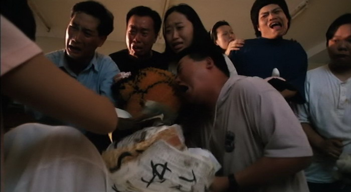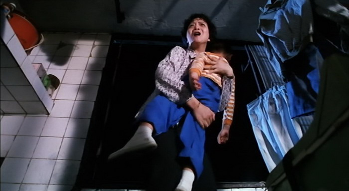 Au début des années 90 et avec la démocratisation des Catégories III, tout un pan de ses derniers se sont mis à s’inspirer d’évènements réels tous plus sordides les uns que les autres. Parmi les plus connus, on citera Dr Lamb (1992) de Danny Lee ou The Untold Story (1993) de Herman Yau. Red to Kill, lui, est l’œuvre de Billy Tang, un habitué du genre puisqu’on lui doit également des bobines comme Brother of Darkness (1994), Deadly Desire (1993) ou encore le monument Run & Kill (1993) qui lui aussi a fait couler pas mal d’encre. Son Red to Kill affiche rapidement sa volonté de choquer mais aussi une virulente critique sociétale sur le handicap, la vulnérabilité et la stigmatisation, et ce dès les premières secondes du générique avec l’avertissement suivant : « Ce film espère attirer davantage l’attention sur les personnes atteintes de troubles mentaux. ». Le regard sociétal sur la justice, l’institution ou encore la responsabilité morale vont se traduire par certaines scènes chocs, comme ce moment dans le premier acte où une femme en détresse va se jeter du haut de son immeuble avec son fils dans les bras, ou encore lors de la scène du tribunal qui tient plus de la mascarade et du grotesque avec le violeur en série qui est acquitté malgré les doutes et des institutions qui ne suffisent pas à protéger l’héroïne handicapée de l’histoire. Red to Kill n’est pas le plus violent ou le plus gore des Cat III. Il n’est pas non plus le plus érotique. Mais il est clairement l’un des plus dérangeants. Il prend le temps d’établir toute la beauté et l’innocence du personnage handicapé mental interprété par Lily Chung (Daughter of Darkness, Fatal Encounter), avec de jolies petites scènes certes ô combien naïves mais parfaites pour la rendre attachante, avant de déchainer les forces de l’enfer contre elle à mi-film lors d’une scène de viol particulièrement éprouvante et malaisante pour le spectateur. Le traumatisme qui suivra ne sera guère plus supportable. Le fait de prendre comme victime centrale du film (car il y en a d’autres) une personne handicapée ajoute une dimension de fragilité et une radicalité rarement aussi exploitées dans ce type de films.