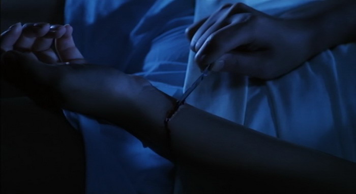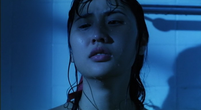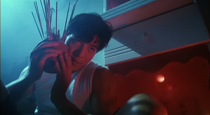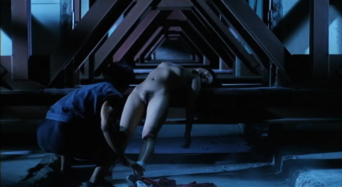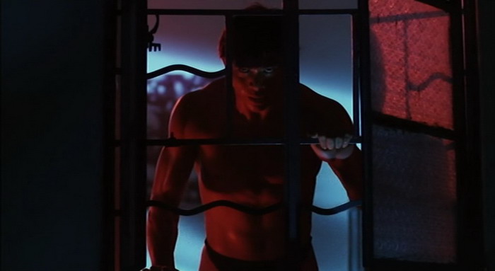 Là où Red to Kill est encore plus malaisant, c’est qu’il ne focalise pas le regard que sur ces victimes de viol, en en particulier cette jeune fille handicapée, mais l’agresseur est aussi objet de regard et de fascination morbide, avec ces nombreux plans millimétrés sur sa musculature impressionnante, sur son corps autant dénudé que celui de ses victimes, le tout dans une mise en scène de très haut niveau, surtout pour ce genre de production. La mise en scène de Billy Tang va jouer sur l’inconfort et le voyeurisme du spectateur, comme s’il était complice de ce qu’il se passait, nous plaçant dans une position vraiment délicate. Son film est visuellement et formellement très travaillé, avec notamment une très belle photographie, des jeux de couleurs et de lumières réfléchis et des cadrages millimétrés qui sortent clairement Red to Kill du simple film d’exploitation. La scène d’introduction, de toute beauté malgré le contenu choquant (un viol), nous met immédiatement dans l’ambiance. Le choix du rouge comme élément déclencheur de la folie du psychopathe n’est pas anodin, le rouge pouvant évoquer tout un tas de choses thématiquement parlant, mais pouvant également rappeler, sur un plan plus formel, les giallos. Certaines scènes (l’automutilation sous la douche) ne semblent être là que pour tester la patience des spectateurs jusqu’à la rupture, mais sont pourtant magnifiquement mises en scène au point que malgré le spectacle malaisant et les pires excès du film, avec ses scènes de viol prolongées conçues comme un vrai spectacle visuel, Red to Kill captive l’attention comme peu de films d’horreur hongkongais ont réussi à le faire jusque-là. La force d’un tel spectacle, on la doit à la mise en scène, mais aussi au talent des acteurs, en particulier du trio de tête, qui interprètent leur rôle à la perfection. Lily Chung est toute en naïveté et en fragilité malgré un tournage qu’on imagine des plus mouvementé. Money Lo (Daughter of Darkness), qui va se révéler dans la 2ème moitié du film, est impeccable en assistante sociale vengeresse. Ben Ng (Eternal Evil of Asia) est tout bonnement impressionnant dans le rôle du psychopathe qui perd la tête quand il voit une robe rouge. Il incarne le méchant comme une force de la nature imparable animée d’une rage incontrôlable. Sa descente dans la psychose totale lors du dernier acte le rendent absolument effrayant, parmi les méchants les plus mémorables du cinéma de Hong Kong. C’est sans doute à cause de ce rôle qu’il a depuis été quasiment exclusivement cantonné à des rôles de méchants.