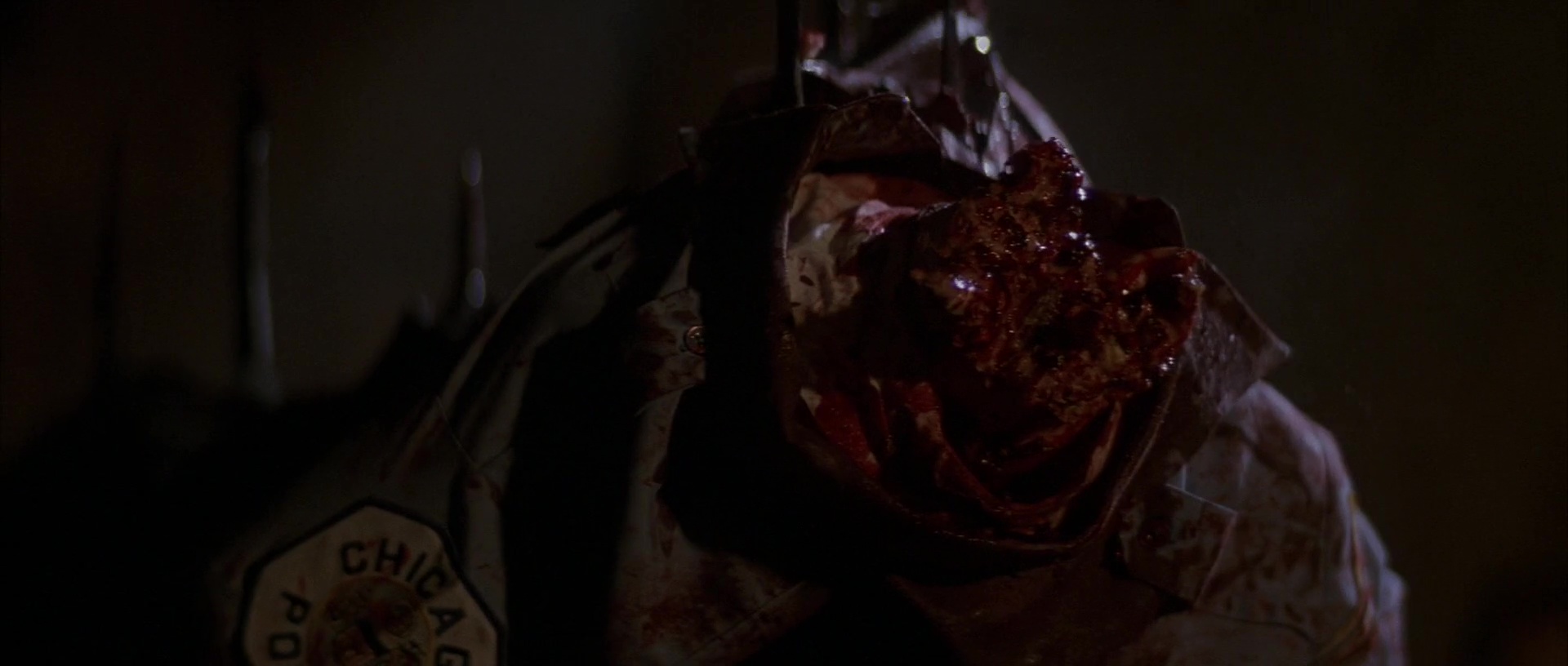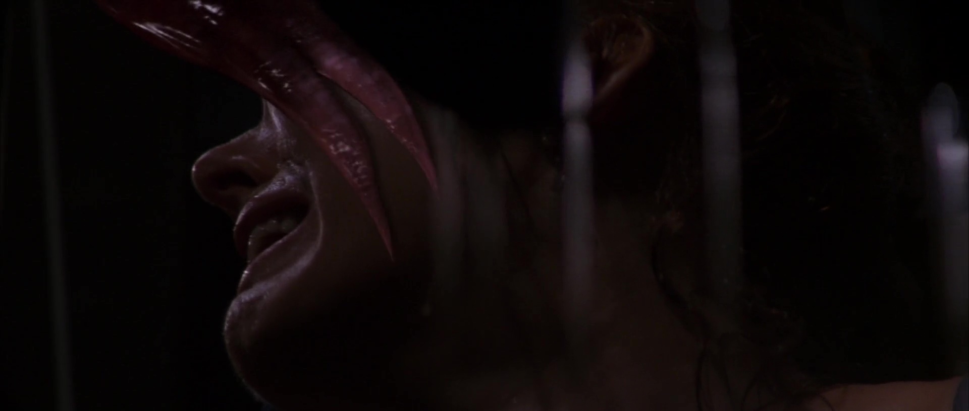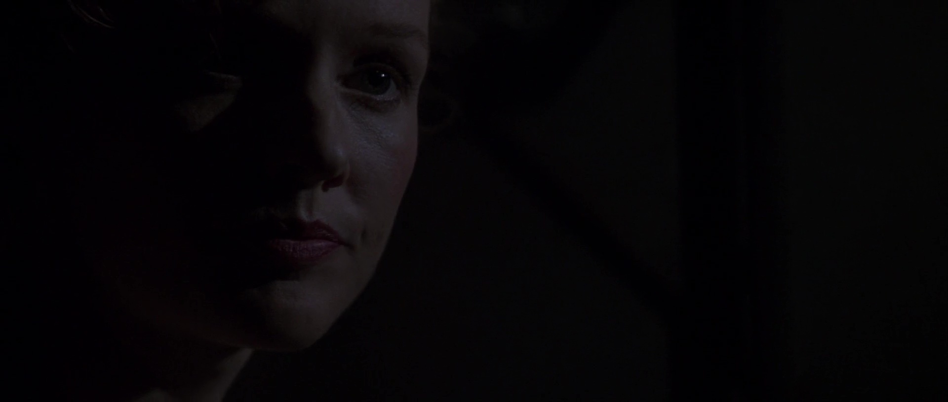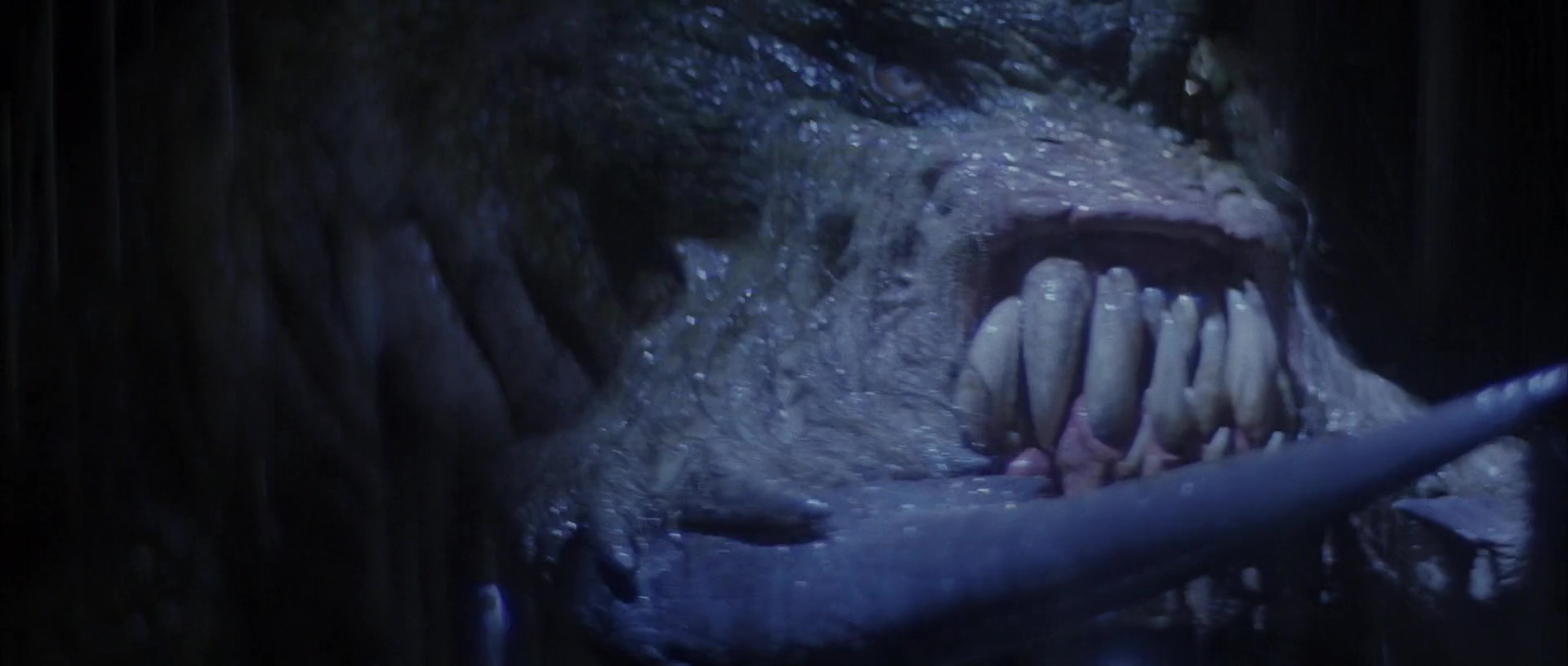 Et voilà, avec cette base simple, Peter Hyams (à la mise en scène mais également à la photographie du film, souvent sombre) nous livre une série B classique, non dénuée de défauts, mais plutôt sympathique. La première heure se fait calme, la créature n’étant peu montrée, se cachant principalement dans les sous-sols du musée, ne sortant que pour se faire un petit repas de temps en temps. Tout se met doucement en place pour une soirée spéciale au musée, que l’on devine par avance qu’il s’agît du moment où tout va vraiment démarrer. Et même si au final, un léger suspense s’installe, le film ne fera pas peur et aucune réelle tension ne viendra dans le métrage. Peut-être que Peter Hyams n’était pas le réalisateur idéal pour cela malgré de beaux essais par le passé (Outland) et d’autres beaucoup moins bons (Timecop avec Van Damme mmm). Son travail a beau être propre, la tension est réellement absente, mais une certaine ambiance prend place tout de même, et dans le genre, on est bien loin de son métrage suivant dans le genre, à savoir… La Fin des Temps avec Arnold. Mais ça nous y reviendront un autre jour (ou pas). Durant la première heure donc, quelques effets gore, et surtout, les ténèbres. Oui, Peter Hyams à la photographie livre un éclairage ultra sombre pour camoufler sa créature. Et ça fonctionne plutôt bien. Comme dans tout film du genre, la créature ne doit pas apparaître trop tôt, ou alors l’effet est ruiné.