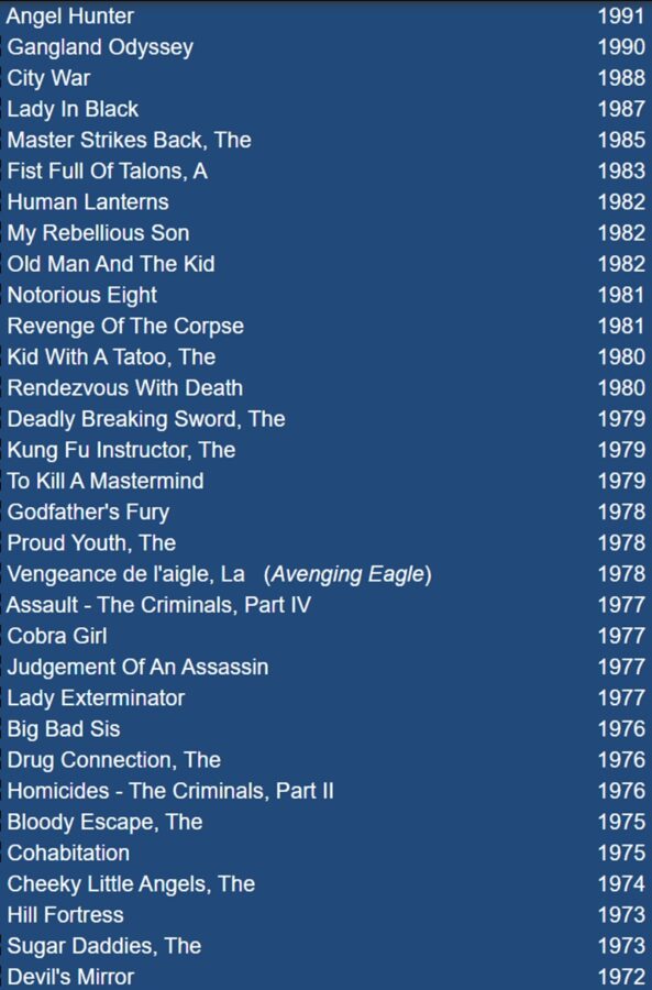 Son premier film est une comédie taiwanaise, mais il est aussi à l’aise dans la satire, le thriller et les films d’arts martiaux. C’est cette versatilité qui le mène en 1970 à la Shaw Brothers pour y réaliser des thriller d’exploitation mémorables.