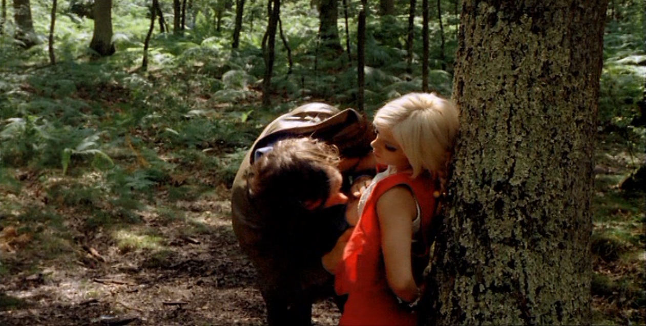 1971 est une année importante pour Jean Rollin, puisqu’il ne réalisera pas un, mais deux métrages sur ces créatures favorites, les vampires. Comme souvent chez lui, les dialogues sont peu nombreux, et les jeunes femmes fonctionnent par paires. Marie-Pierre Castel se retrouve avec le rôle principal, tandis que sa sœur jumelle est remplacée par Mireille Dargent, puisqu’elle est alors enceinte. Les deux sœurs ne seront réunies à l’écran que quatre ans plus tard, pour Lèvres de Sang. Et après les expérimentations psychédéliques du Frisson des Vampires la même année, Jean Rollin continue, tout en rendant son film plus encré dans la réalité visuellement, à expérimenter. Ici, aucun dialogue ne sera prononcé durant les 45 premières minutes du métrage (durant 1h21 seulement). Le réalisateur peut laisser son sens visuel raconter l’histoire au lieu des paroles. Ce qui n’est, vu la qualité souvent relative du jeu de ses acteurs, pas une mauvaise idée. Requiem pour un Vampire pourtant prend tout son temps, puisque les vampires arrivent tardivement, et qu’il nous raconte dans un premier temps la fuite de Marie et Michelle, deux jeunes femmes quittant dans des proportions assez extraordinaire un centre de redressement. Poursuivies par la police, elles se font tirer dessus, et leur complice meurt. Elles brûlent alors la voiture avec le cadavre du complice dedans, et continuent de fuir en moto.