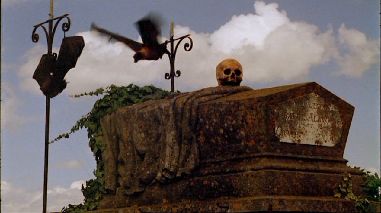 Du Frisson des Vampires, on retrouvera même des éclairages quelque peu surréalistes (la lumière rouge domine dans de nombreuses scènes), la nudité se fait plus présente. Par contre, le sexe s’invite également dans le métrage (sans doute une contrainte de production, Rollin préférant rendre les femmes nues belles à l’écran que filmer l’acte en question). Malheureusement, la seconde partie du métrage semble bien moins maîtrisée que le début, alternant le bon et le beaucoup moins bon. Rollin nous livre toujours quelques magnifiques images (les premiers pas dans le château, Marie-Pierre Castel allongée dans les fleurs du cimetière), la musique de Pierre Raph (qui signera la musique de la Rose de Fer) se fait parfois envoutante, et parfois bien trop niaise. Ce contraste constant, qui par moment passe dans d’autres de ses métrages, brise ici un peu tout. On passe d’une scène sublime et surréaliste, comme celles citées plus haut, ou encore le piano en plein centre du cimetière, à des moments de mauvais goûts, comme lorsqu’un homme poursuit une des héroïnes dans le château sur une musique comique. Requiem pour un Vampire contient le meilleur et le pire de Rollin, et ne peut être conseillé qu’aux fans purs et durs du cinéaste, malgré sa vision du vampire ici fatigué, limite plus humain que ses serviteurs.