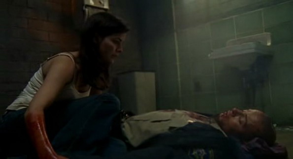 On sent que John Shiban a envie de bien faire. On détecte énormément de bonne volonté dans ce qu’il met en scène mais le manque d’originalité se fait ressentir à chaque instant. Et ceux qui s’intéressent un minimum au cinéma horrifique n’auront aucun mal à trouver les sources d’inspiration du jeune réalisateur. The Hitcher, La Colline a des Yeux, Wolf Creek, Wrong Turn, Monster Man, Jeepers Creepers,… On a cette impression que le cahier des charges du film se composait uniquement d’idées piquées çà et là dans d’autres films que le réalisateur aurait appréciés. Même l’héroïne est un condensé de tout ce qu’il y a de plus cliché en matière de personnage un peu trouillard qui va au final prendre son courage à deux mains et péter la gueule au grand méchant qui a fait bobo à son gentil petit ami qu’il a capturé et torturé. Et double problème, l’actrice Jaimie Alexander (Le Dernier Rempart, la série Kyle XY), très jolie au demeurant, n’a clairement pas le talent pour assumer un rôle dans ce genre de film où tout repose sur les épaules de son héroïne. Son jeu est souvent faux, on lui en demande sans doute trop pour sa maigre expérience lors de la sortie du film, et couplé aux réactions complètement étranges de son personnage (tiens, si je me bourrais la gueule dans une petite cahute alors que mon copain vient de se faire enlever…), on ne croit pas une seule seconde aux émotions auxquelles elle essaie de nous faire croire. Autre point particulièrement gênant, Rest Stop n’a beau durer que 1h25, on retrouve cette désagréable sensation que certaines scènes sont étirées afin de rallonger artificiellement la durée du film. La scène du policier est interminable et aurait gagné en intérêt si elle avait été raccourcie de moitié. Le film aurait également été bien plus percutant si l’introduction n’avait pas été aussi longue et cul-cul.