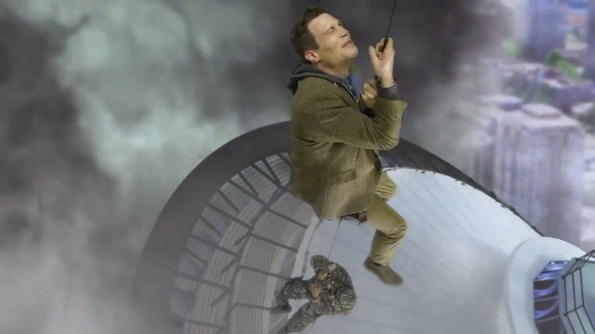 Ces réseaux sociaux sont d’ailleurs au centre du film puisque le réalisateur s’emploie à les moquer que ce soit sur les titres racoleurs des articles qu’on y trouve (Facebook ou Youtube), sur comment la moindre information capable de faire le buzz se propage à une vitesse folle à travers le monde, ou sur comment un jeune ado de 15 ans peut devenir en un instant une star du net suivie par des centaines de milliers de personnes. Tout ça est fait avec beaucoup de second degré lors d’une scène extrêmement fun, plutôt bien fichue et dans un sens, tellement réaliste. Mais comme il faut pousser la connerie beaucoup plus loin, vlà t’y pas que notre roboshark arrive à communiquer par twitter avec la fille du héros, à base d’emoticones. Et parce que les producteurs du film sont de sacrés déconneurs, si vous parlez du film « Roboshark » sur Twitter, vous aurez l’immense honneur d’être suivi par Roboshark lui-même. Une idée des plus originale, complètement inutile et donc indispensable.