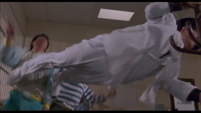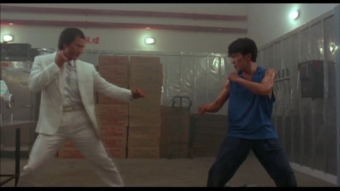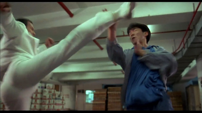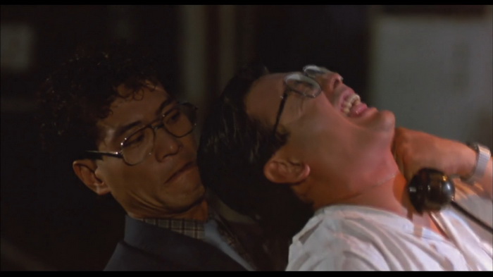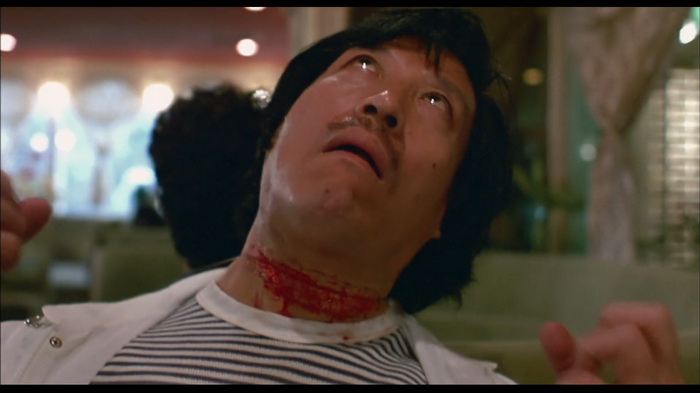Cette partie comédie est le plus souvent sans inspiration, tombant dans la facilité des gags tournant autour du décolleté de Hu Hsiao-Fen, et l’ensemble est souvent alourdi par le jeu over the top et très bruyant de Lowell Lo qui, aussi sympathique soit-il, finit par devenir assez lourdingue tant il passe son temps à gesticuler dans tous les sens. Ces gags, qu’ils soient ratés ou réussis, prennent énormément de place et ralentissent beaucoup la partie policière / action du film au point que, lorsque le final arrive, on a l’impression que quelqu’un s’est dit « Bordel mais on est à 1h15 de film ! Il faut lancer de suite la scène d’action finale ! ». Du coup, Rosa est quand même relativement avare en action et c’est dommage car le tout petit affrontement de la première heure laissait présager du bon et si Joe Cheung avait eu rajouter de la bonne baston ci et là, l’intérêt d’en aurait été que plus grand. Ici, on préfère tout concentrer dans le dernier quart d’heure dans un climax bien fou comme Hong Kong le faisait souvent à cette époque. Le trio Yuen Biao / Yuen Wah / Lam Ching-Ying fait des merveilles avec des échanges de coups et des cascades qui nous rappellent pourquoi on aime tant le cinéma de Hong Kong. On a d’un côté l’excellent Kara Hui qui va affronter tout un tas d’hommes de main pendant que de l’autre, Yuen Biao se frotte à Dick Wei après avoir lui aussi balancé quelques tatanes sur des sbires. bien que nous ne soyons pas là dans les meilleurs combats qu’on put procurer aussi bien Biao, Hui que Wei, l’ensemble se fait efficace, nerveux, avec des chouettes chorégraphies, et on se sent enfin récompensé d’avoir quand même un peu souffert après la première heure pas souvent très drôle du film. En résulte un film moyen, certes au final pas désagréable non plus, mais bien en deçà des meilleures comédies d’action que Hong Kong a produit à cette époque.